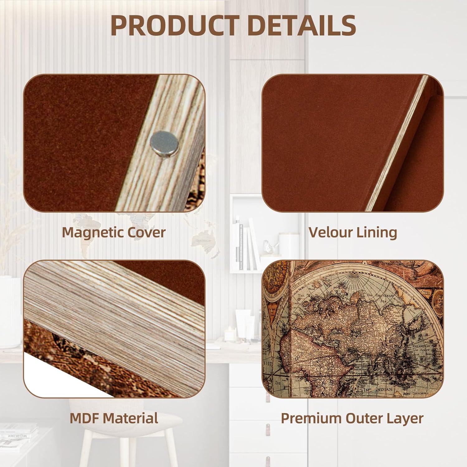 - Luxurious Design with Magnetic Closure Crafted from durable MDF and lined with soft velvet, this decorative storage box features a seamless magnetic closureâno keys needed for easy access.