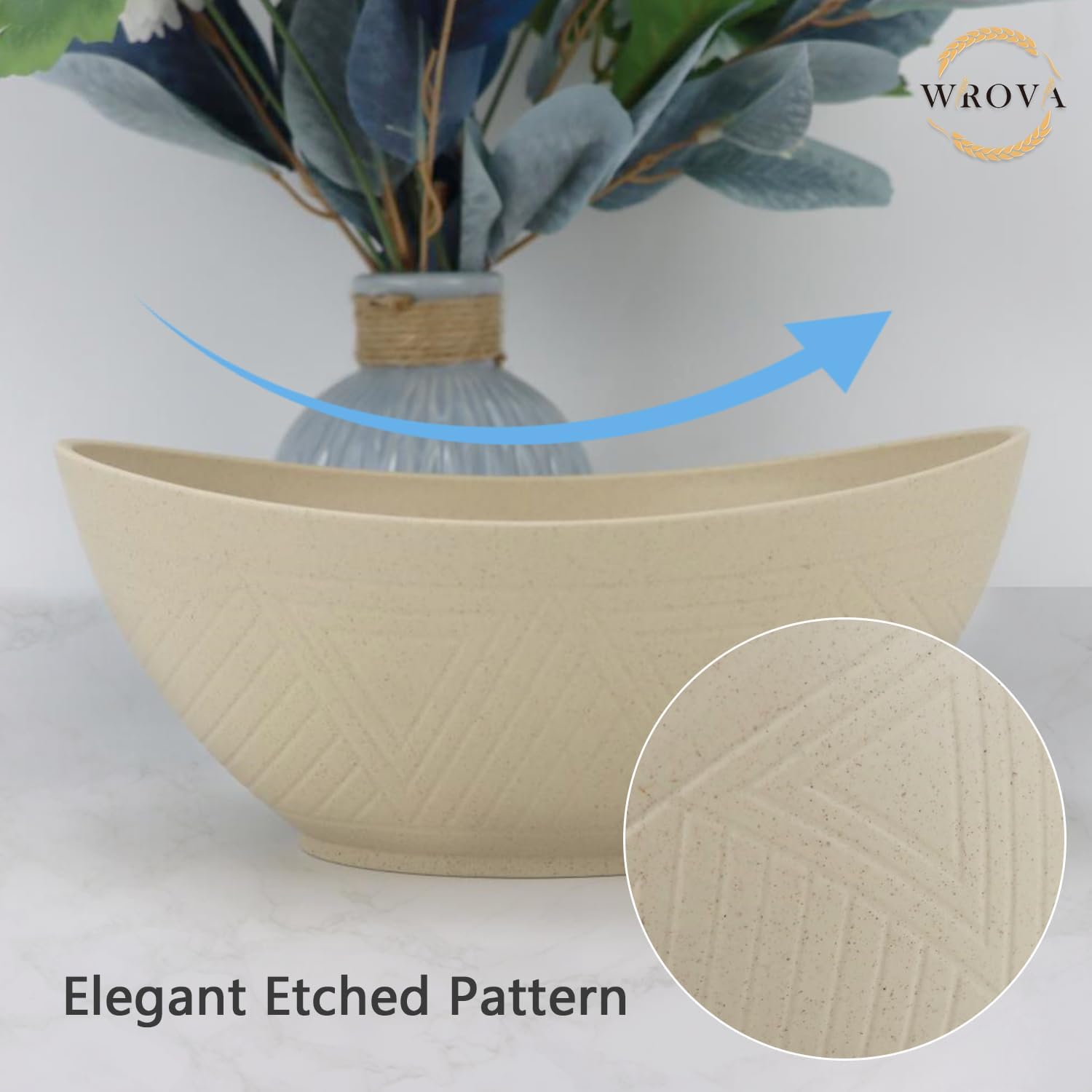- ใ๐จ๐ป๐ถ๐พ๐๐ฒ ๐ฆ๐ต๐ฎ๐ฝ๐ฒ & ๐๐ฒ๐ฐ๐ฒ๐ป๐ ๐๐ฝ๐ฝ๐ฒ๐ฎ๐ฟ๐ฎ๐ป๐ฐ๐ฒใ- Elevate your dining experience with Wrova serving bowls featuring a distinctive oval shape and special etched pattern. Perfect for adding a touch of fun and sophistication to your meals.