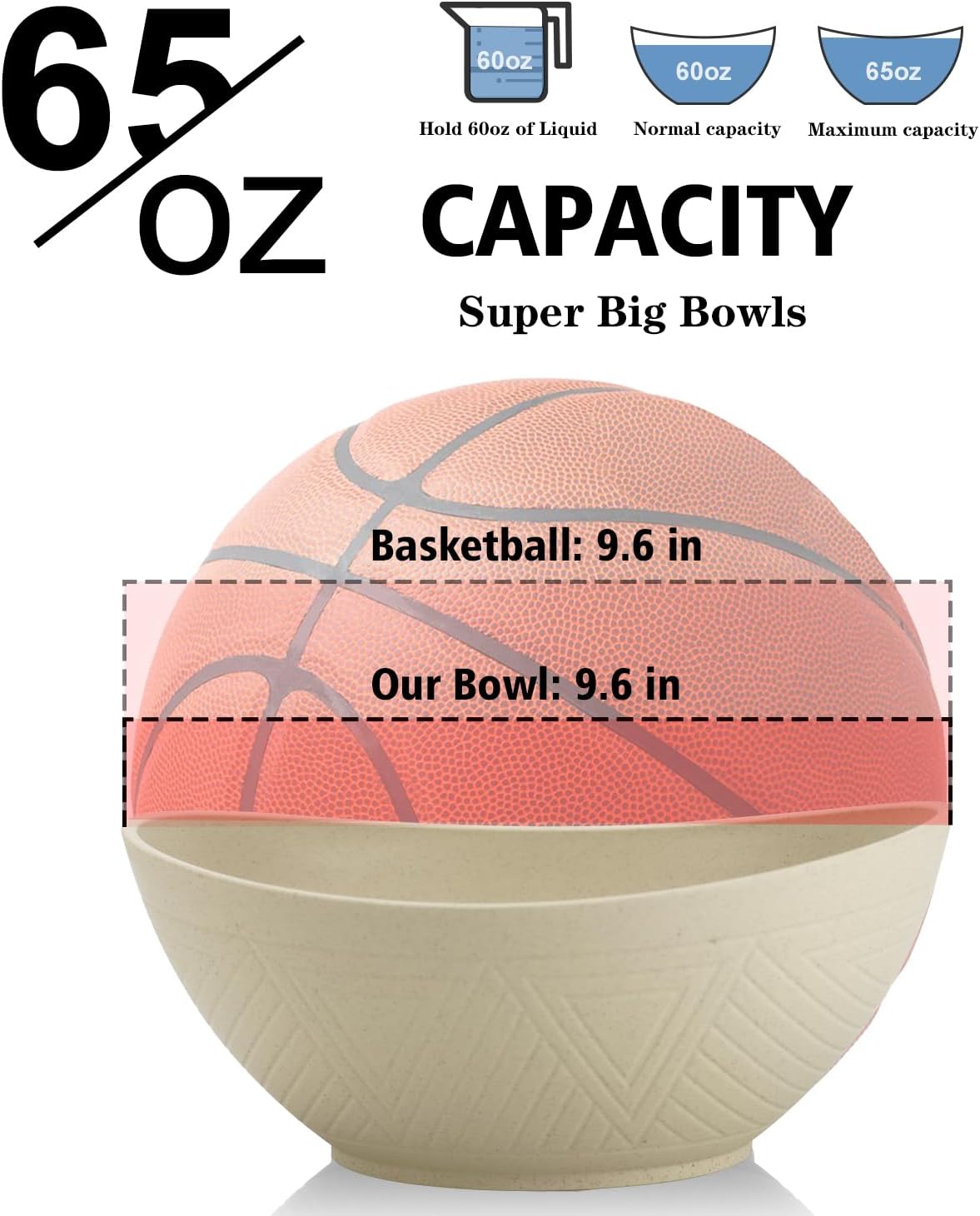 65oz Big Wheat Straw Bowls - Large Salad Bowls set of 6 - Unbreakable Serving Bowl Sets - Microwave & Dishwasher Safe Bowl Sets for Cereal,Salad,Fruit - Beige