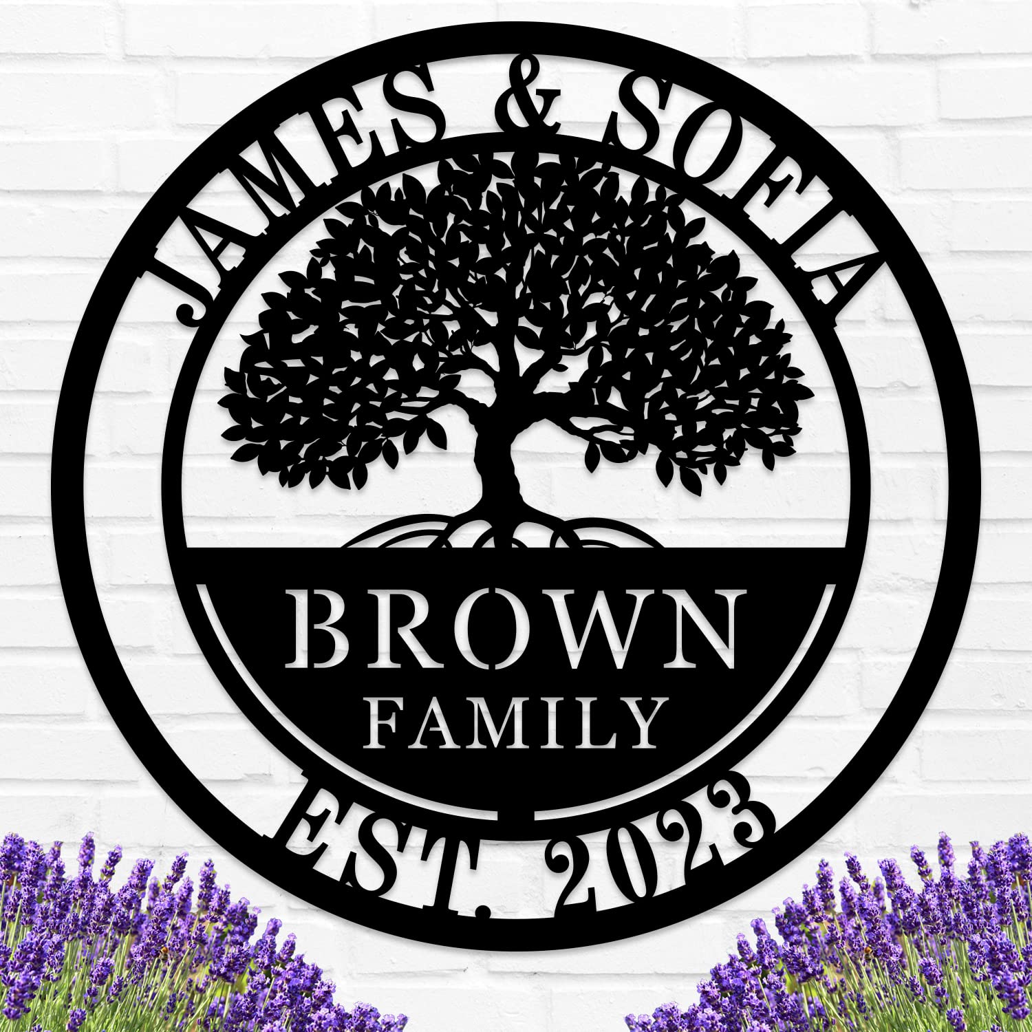 Custom Tree of Life with Roots Family Name Sign, Personalized Metal Sign
