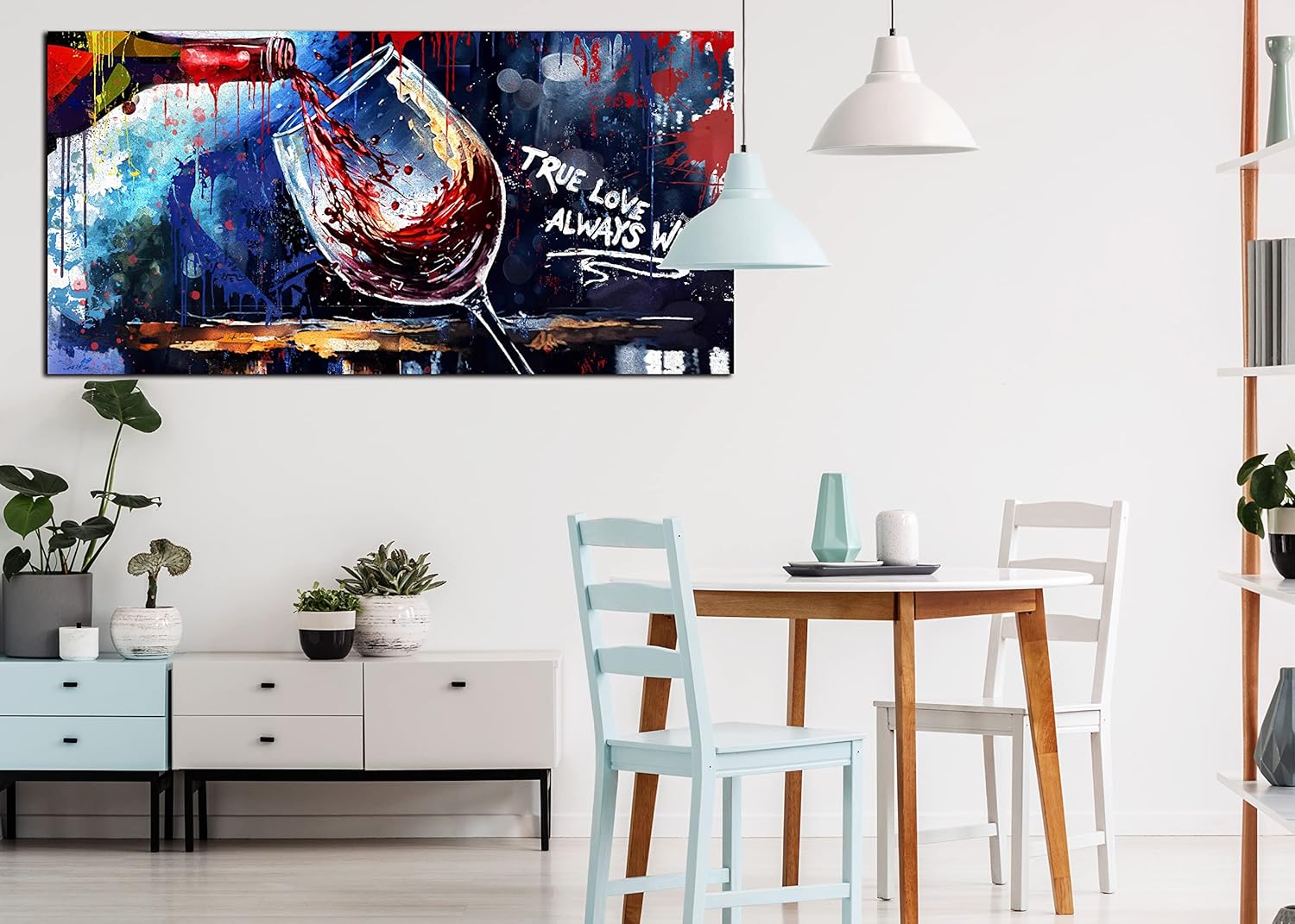 Graffiti Wall-Art - Wine Glass Wall Art for Kitchen - Canvas Art Wall Decor for Living Room Ready to Hang Size 59" x 29"