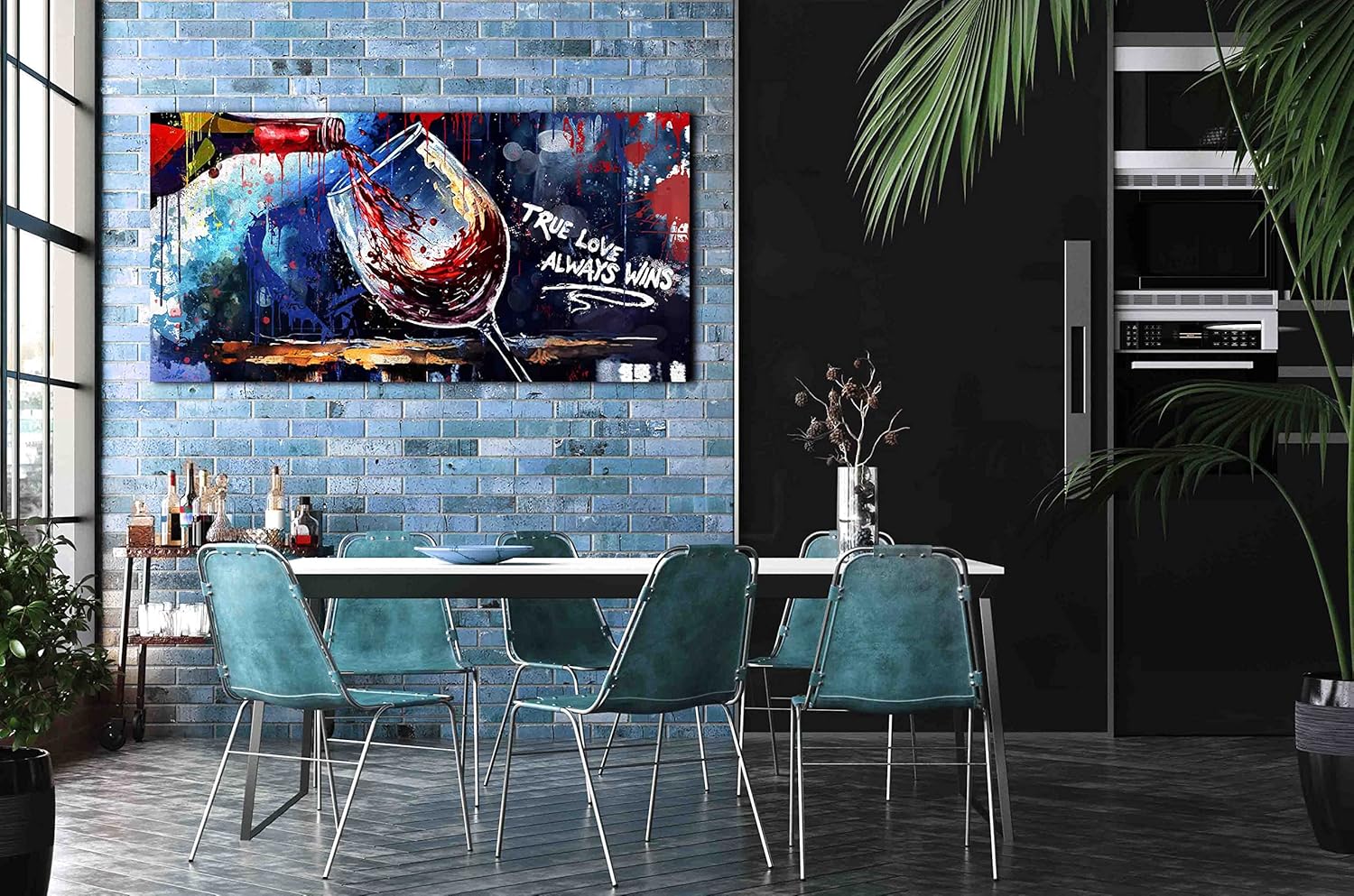 - 【HI-Q MATERIAL】 High quality, HD prints on premium canvas, waterproof canvas, UV resistant, fading resistant indoor. Graffiti wall art wine glass wall art for kitchen canvas art wall decor living room.