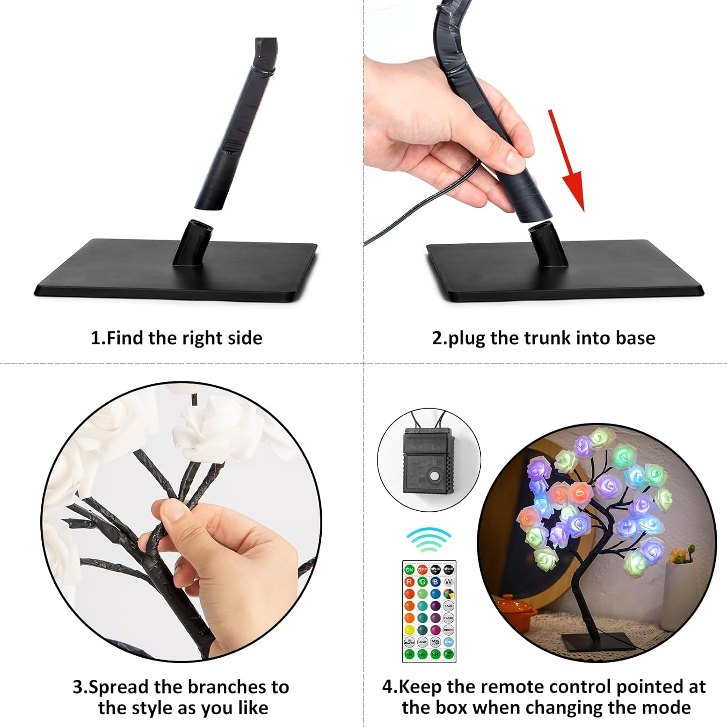 - COLORFUL ROSE TREE LAMP---This charming little tree is handcrafted to look elegant and warm. This rose light has soft rose petals and colored bulbs that can change 16 colors. Will create a wonderful atmosphere for your house or your table