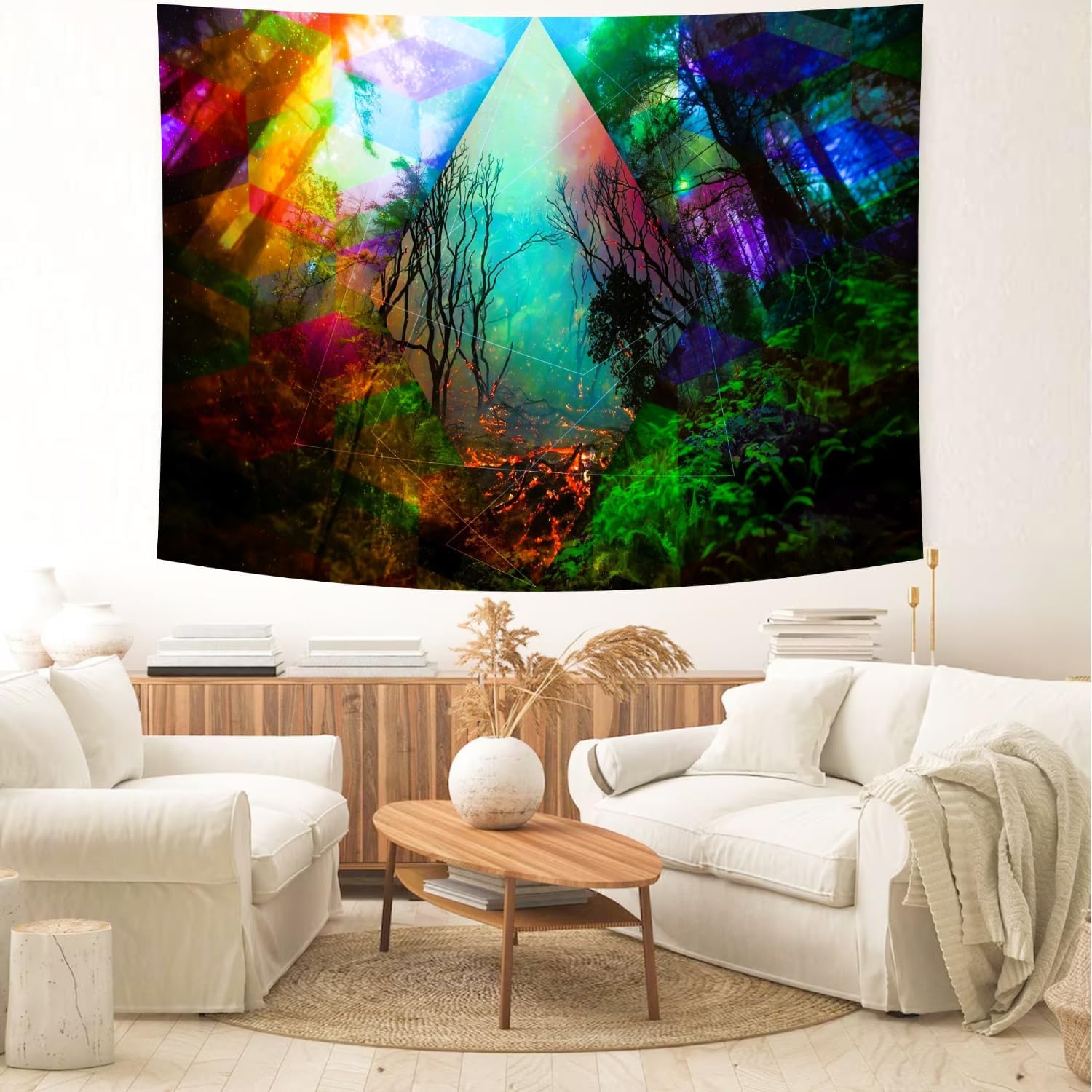 Delur Forest Tapestry Tree of Life Tropical Rainforest Tapestry Wall Hanging Colorful Nature Landscape Mystical Psychedelic Spiritual Headboard for Bedroom Living Room Home Decor (59.1" x 78.7")