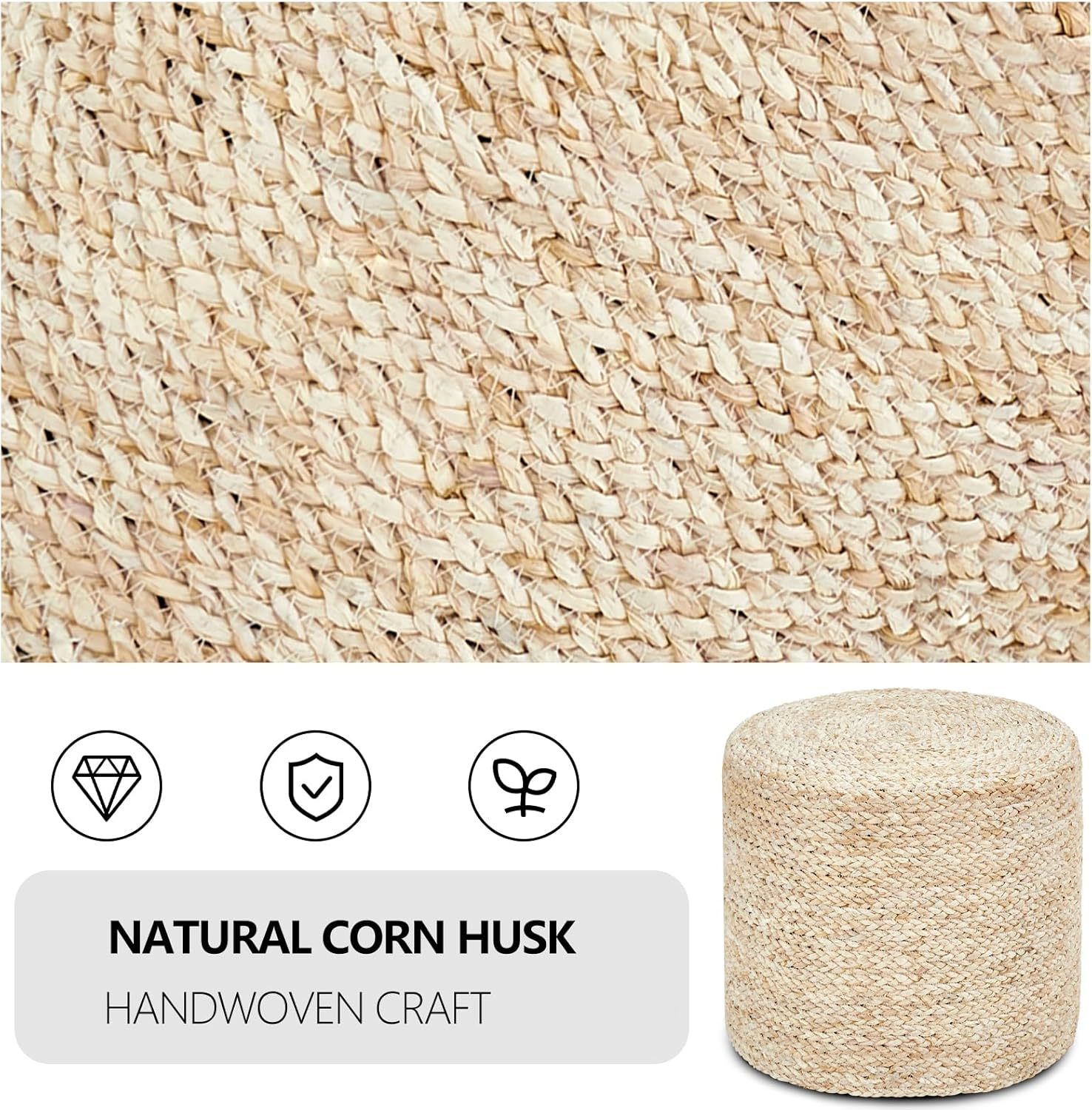 Wimarsbon 18'' Ottoman Pouf, Natural Braided Poof, Rustic Handweave Lounge Pouffe, Boho Footrest Stool for Bedroom, Accent Table or Seat for Living Room (Natural Corn Husk)