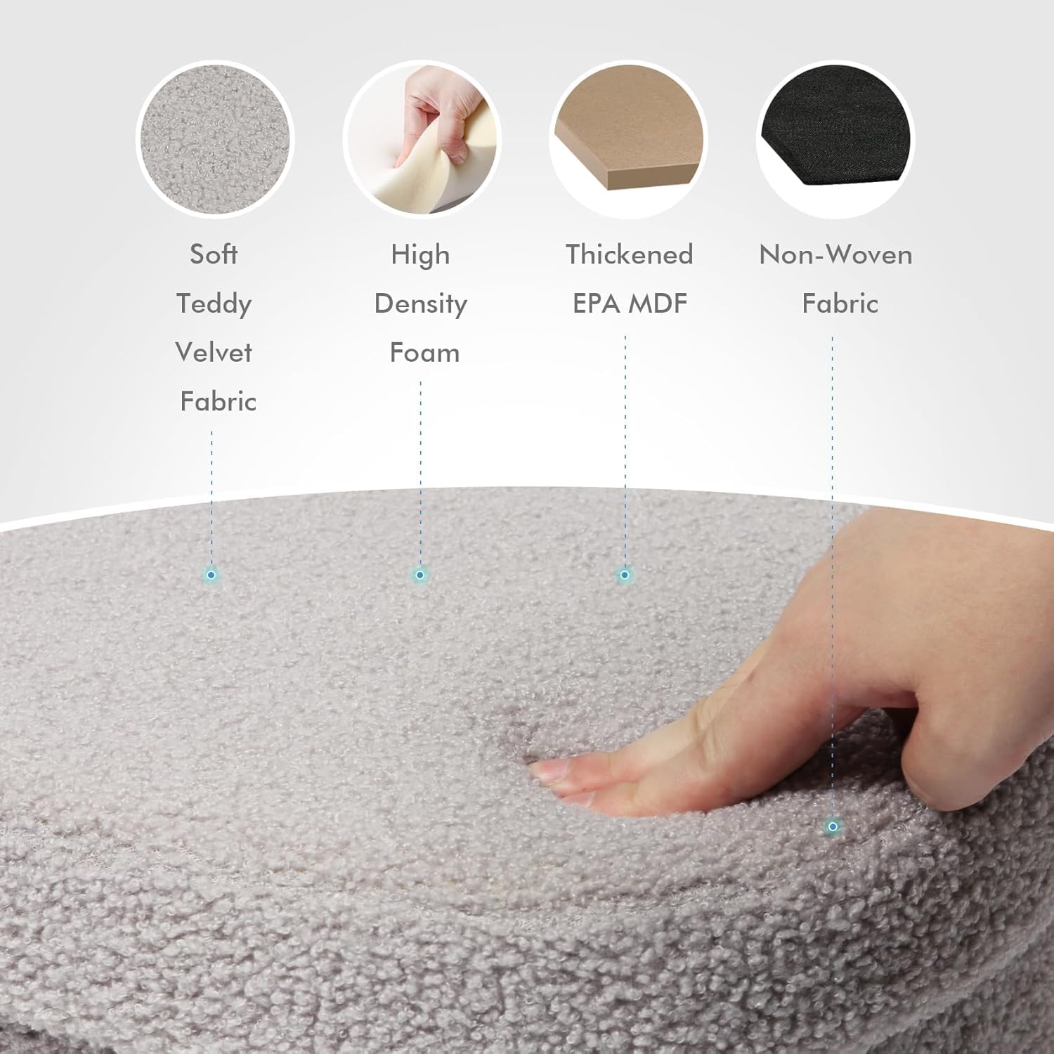- ăSturdy & DurableăThe stool body wrapped in Top-quality Faux lamb fleece offers ultimate soft and comfort. The medium density fiberboard used in this ottoman is made from FSC certified wood. 15 inches is an ergonomically comfortable height for most people.