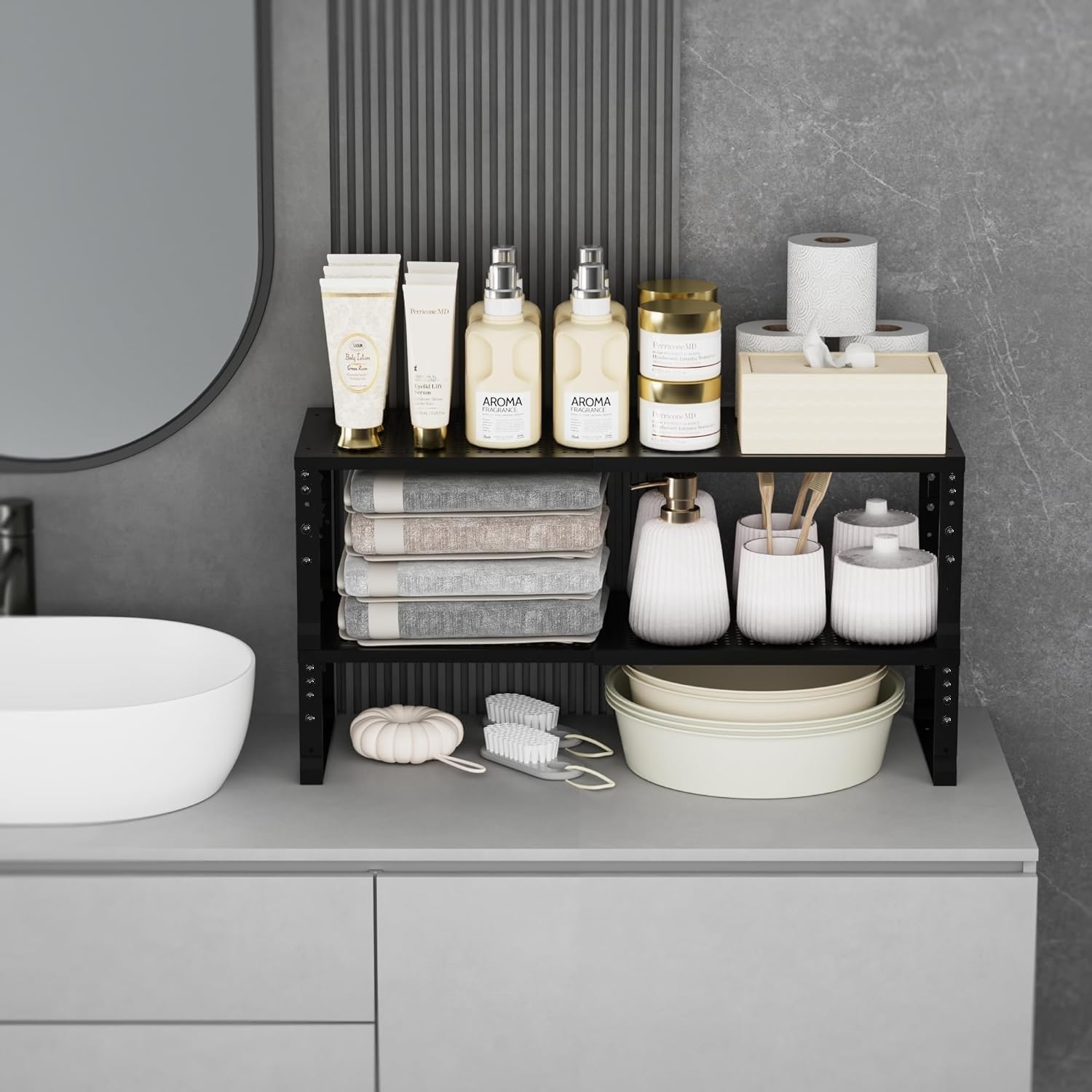 - â[Multi-purpose]This Shelf can be used in various scenes of your house including cabinets,bathroom,dressing table or under a sink. Easily organizing your cabinets for the plates, bowls, snacks, books, foods,body lotion and other else.