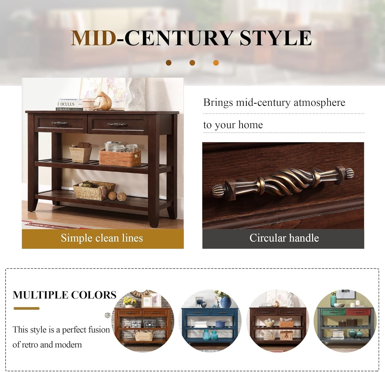 Solid Wood Console Table Sofa Tables with Drawers and Shelves Small Entryway Table for Living Room,Decorative,Foyer(42" Espresso)