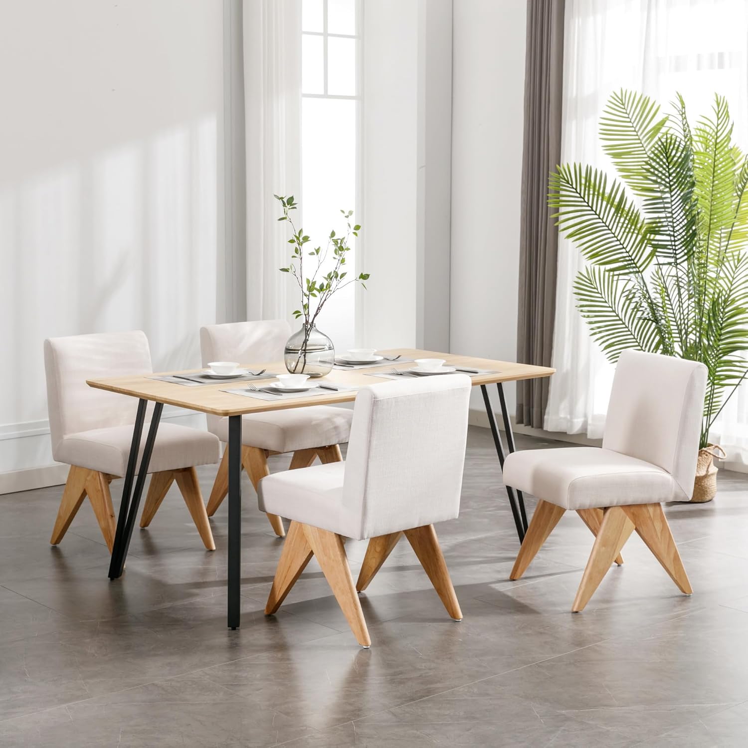 Mid Century Modern Farmhouse Dining Chairs Set of 4, Upholstered Armless Kitchen Chairs with Back and Wooden Legs, Linen Beige