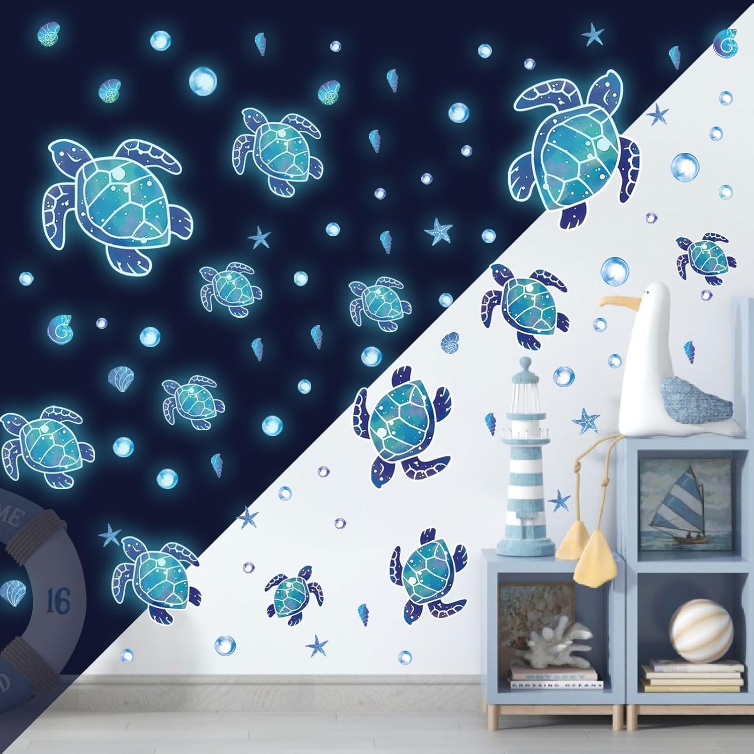 - LONG-LASTING GLOW: Just put it in the light or sunlight for 30 minutes before use the ocean wall decals. It glows in the dark for 8-15 hours, giving you a fairytale feeling. The longer it absorbs light, the longer it will stay with you at night. it can soothe your child to sleep.