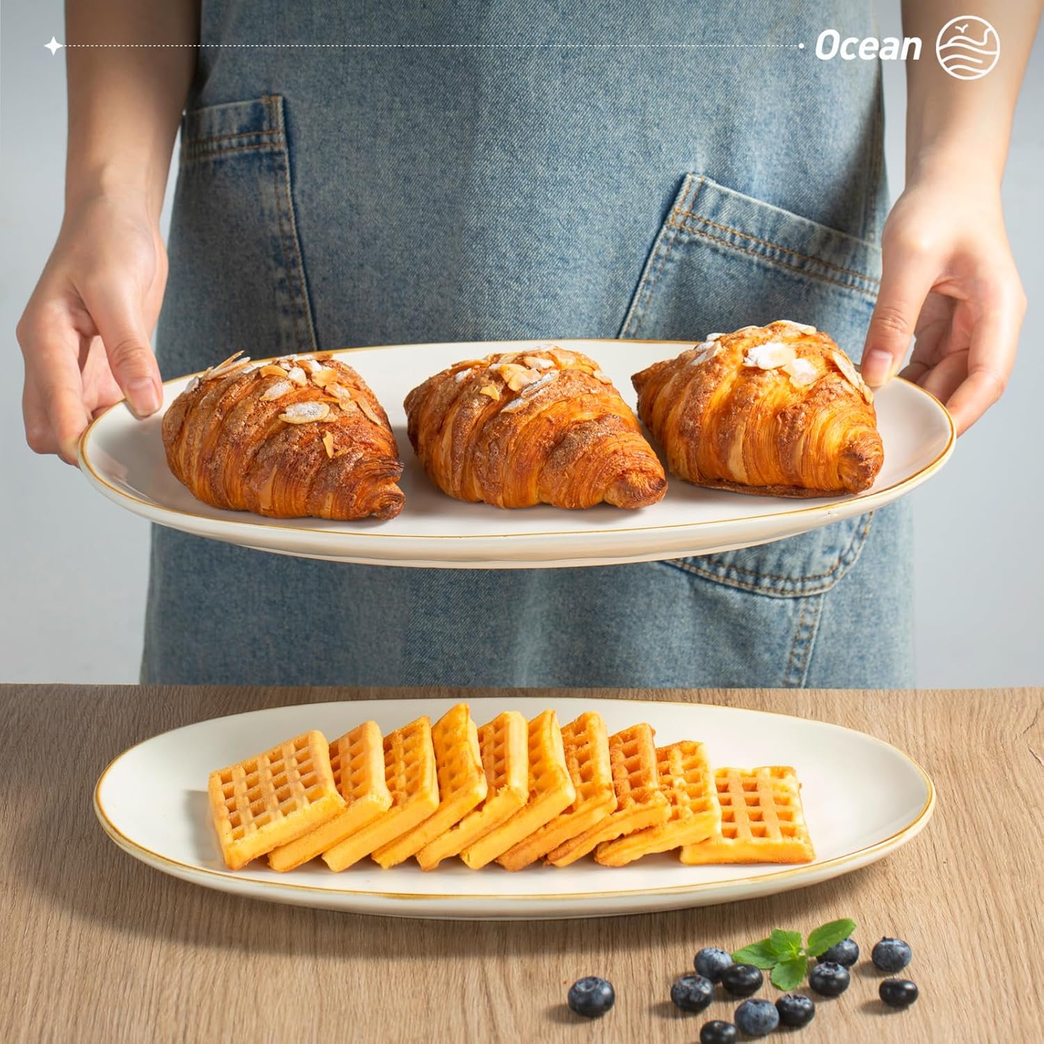 - Sturdy and Enduring: Ocean Series serving platters for entertaining is made of premium stoneware, which is fired by high temperature and mix of all-natural clays. Each piece of the serving plates is sturdy and enduring.