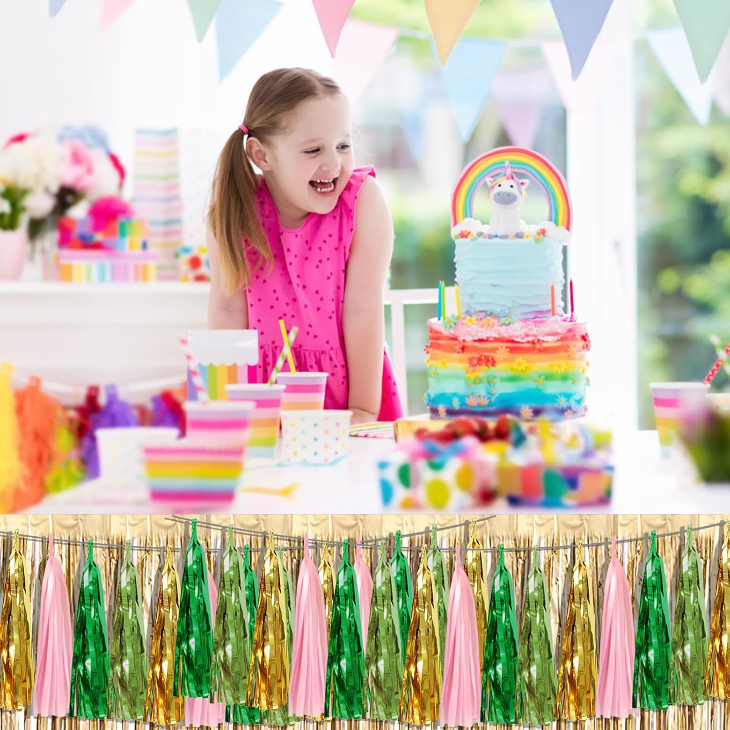 - 【Perfect Party Decoration】The sage green pink gold tinsel garlands are designed in a metallic Fringe, bright, and beautiful, at the same time, they shine in the sun, and these gorgeous tassel garlands create a wonderful backdrop or centerpiece for your party space. and bring you, your family, and your friend's good Visual effects. your party many emotional and touching moments where a lot of pictures will be taken and everybody will have a wonderful time together.