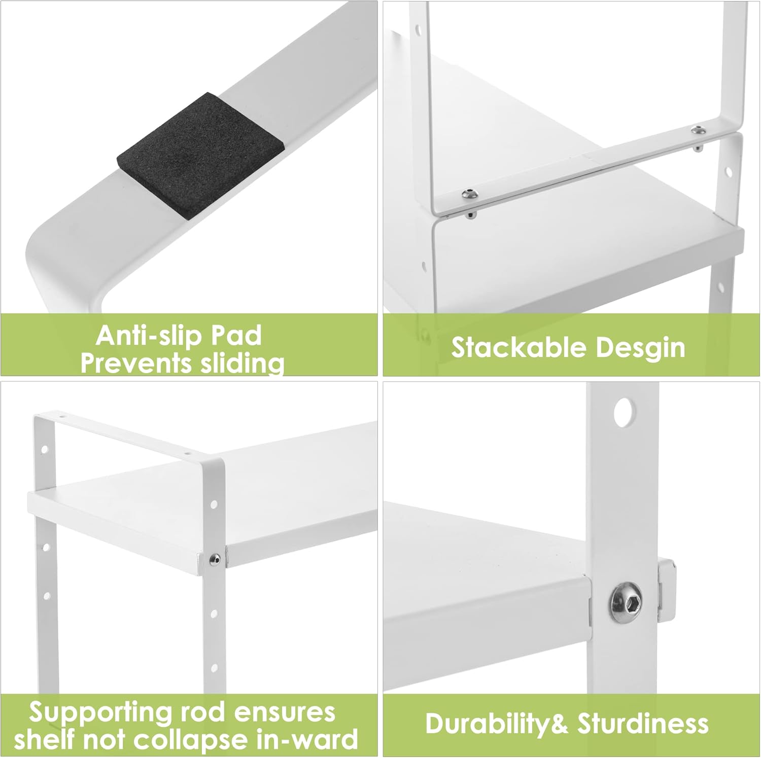 Expandable Cabinet Shelf Organizer Rack, Stackable Kitchen Counter Storage Shelves Stand, Adjustable Height Pantry Shelf Spice Rack (White, 2 Pack)