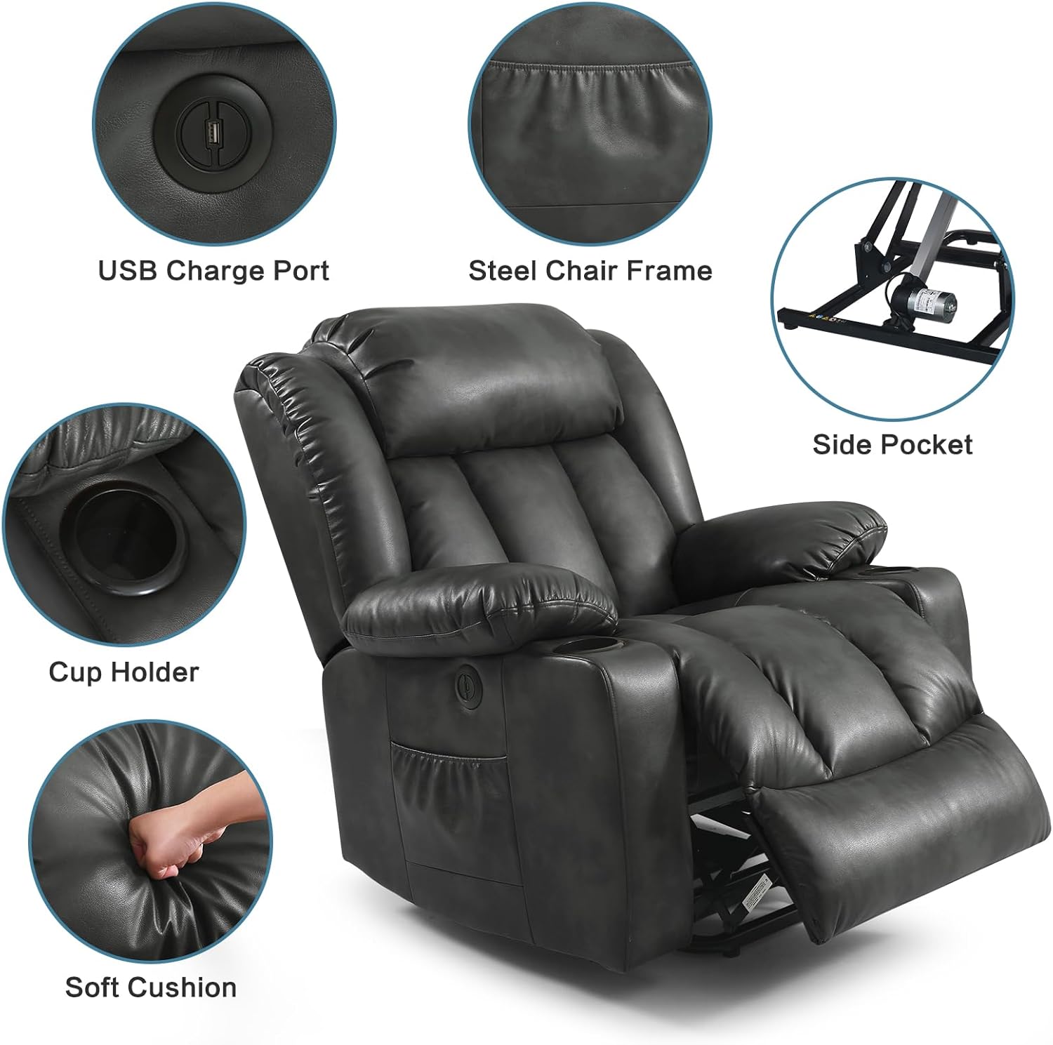 - [Additional Features] - This chair has many wonderful functions. Charge your electronic devices anytime with the 2 USB charge ports while keeping small items close at hand with the pockets on both sides of the armrest. The 2 cup holders cater to your daily beverage needs. The extension footrest allows you to stretch and fully relax while indulging in activities like reading, sleeping, or watching TV. Control all functions of the chair with the convenience of the included remote control.