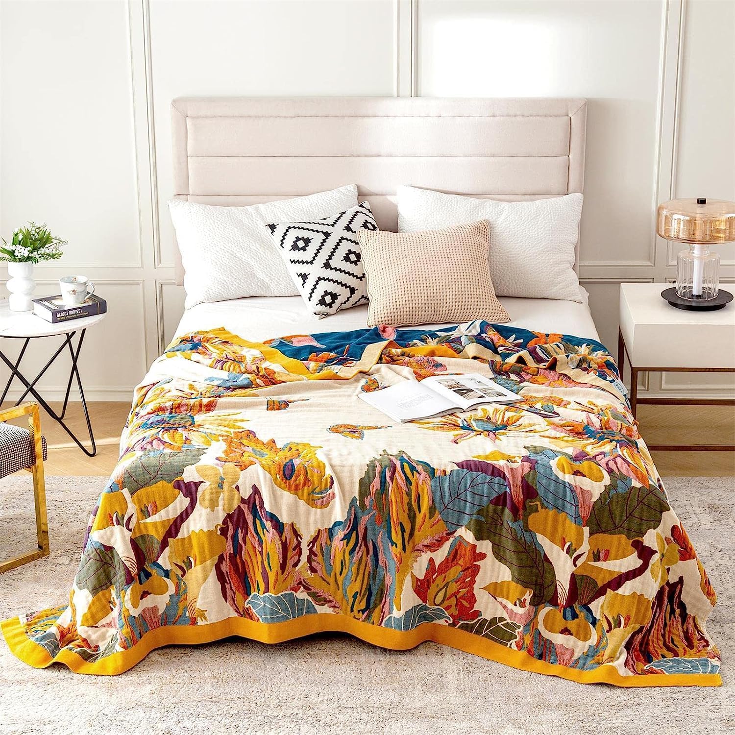100% Cotton Throw Blanket for Bed Couch Summer 98''x 98'' Super Soft Muslin Blankets Warm Boho Quilt Lightweight Farmhouse Decorative Bed Blankets