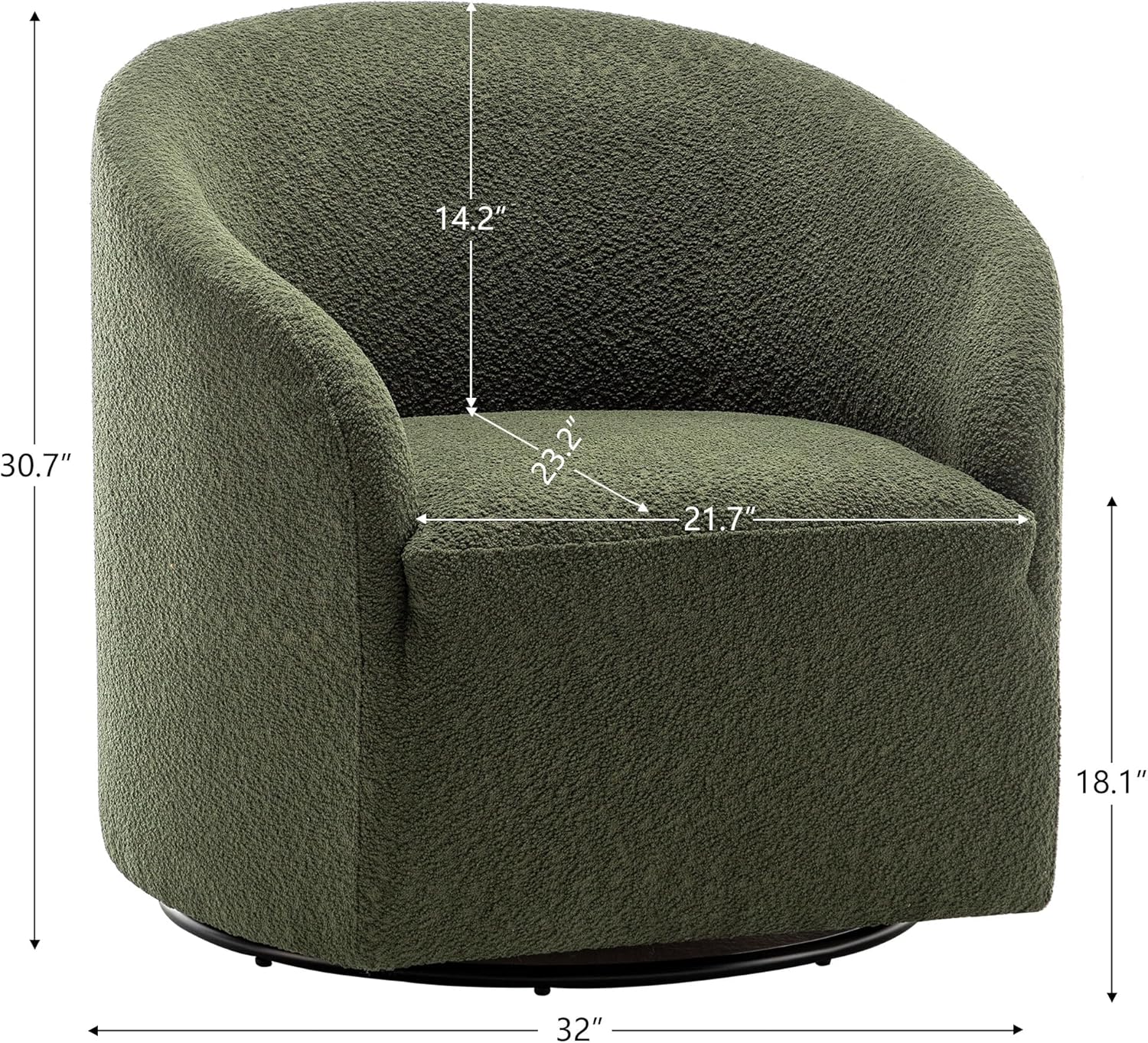 - Sturdy Base & Frame: The boucle chair's 360-degree swivel metal base allows for versatile and flexible seating options, and the frame of the swivel chair is made of sturdy solid wood. You can easily turn the chair to face different directions or turn towards different parts of the room without getting up.