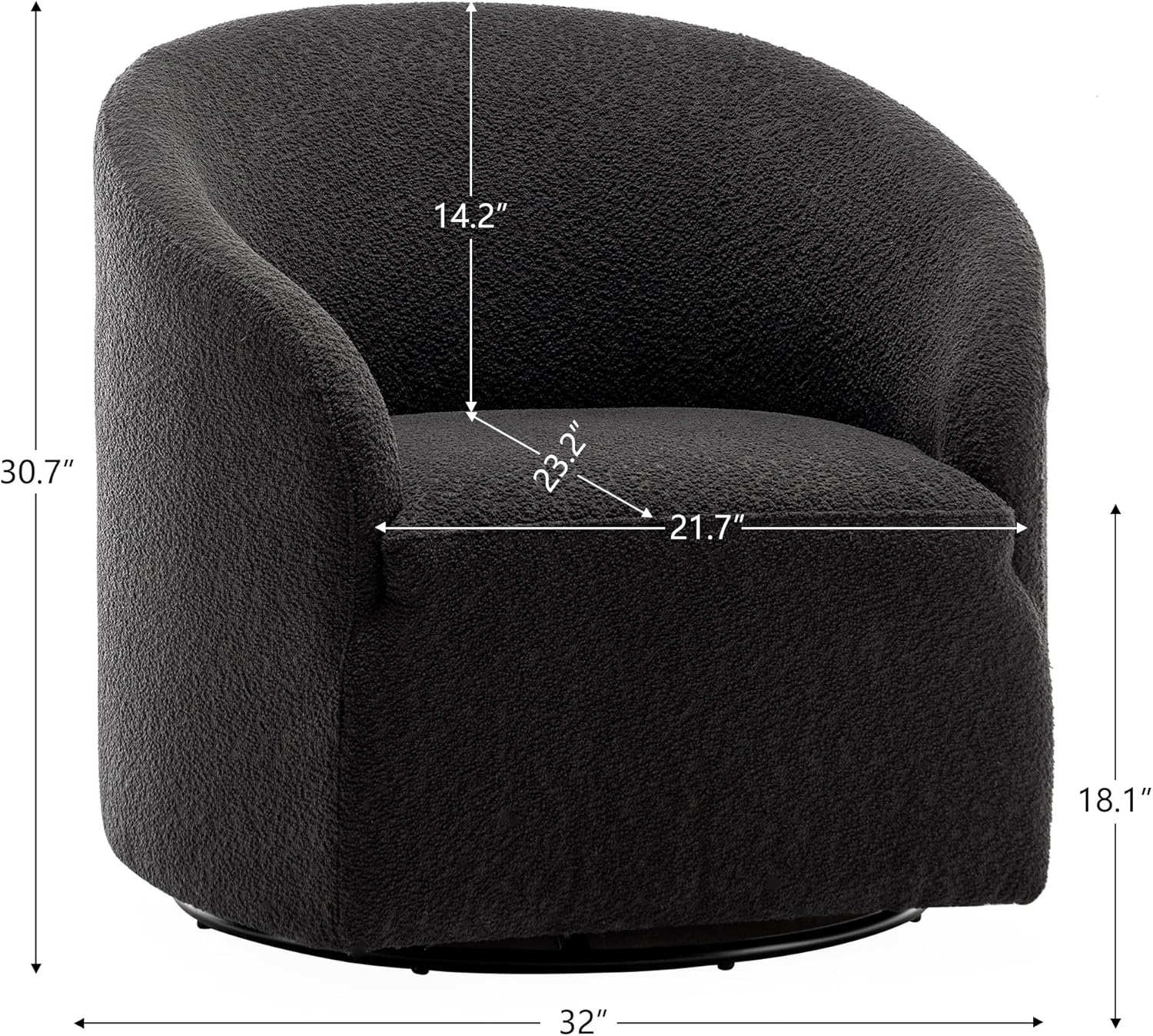 KINWELL 32" Wide Modern Boucle Swivel Barrel Chair, No Assembly Round Upholstered Swivel Accent Armchair for Living Room, Bedroom, Office (Black)