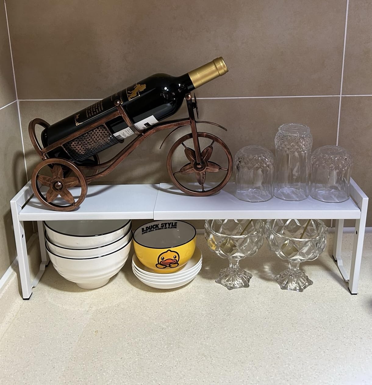 - Versatile Space-Saver: This expandable metal shelf organizer is perfect for maximizing small spaces like kitchen counters, desktops, or narrow cabinets. Adjust the length from 16-26 inches, width 5.1 inches, height 7.3 inches, with a maximum under - shelf height of 6.14 inches, this narrow shelf accommodates various storage needs