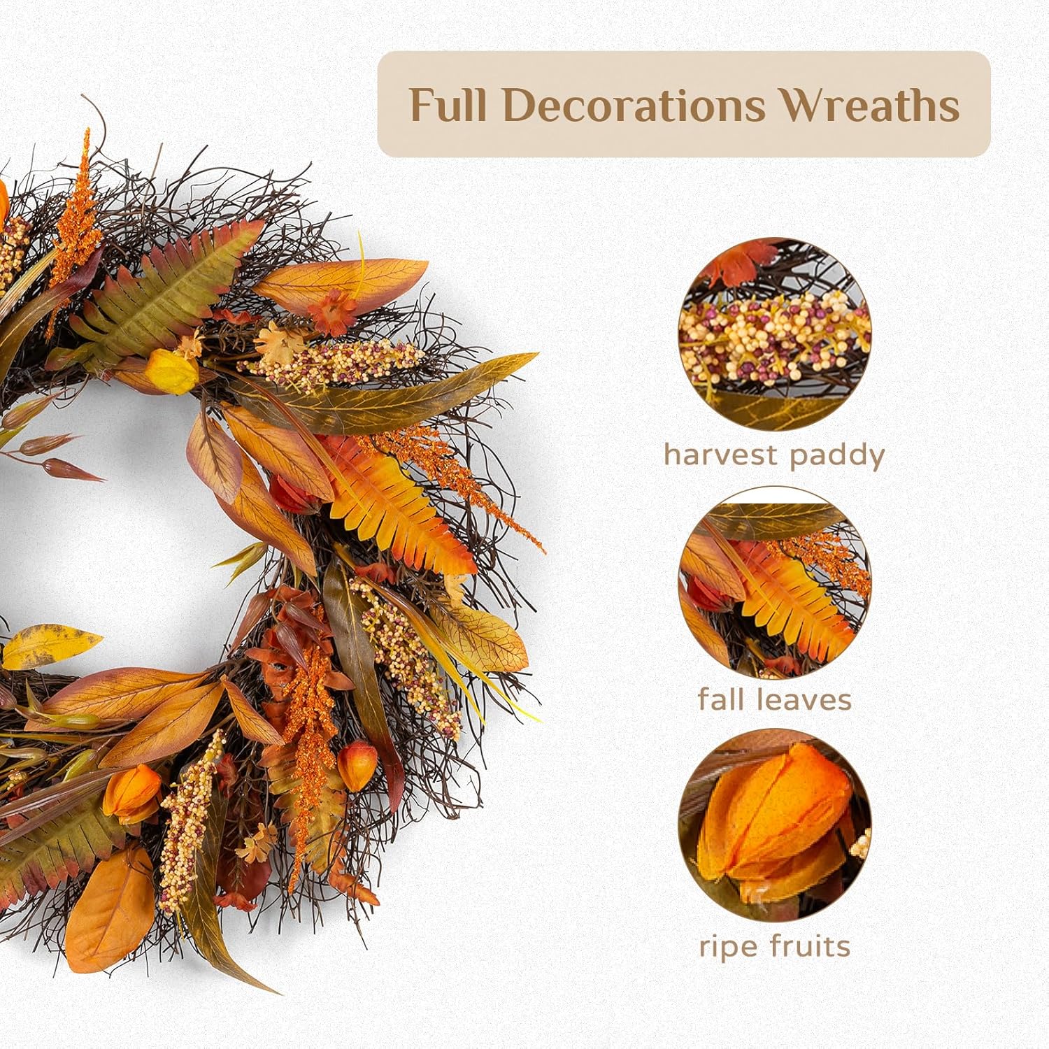 - Thoughtful Gifting Option: Looking for a heartfelt gift for the fall season? Our welcome wreath is an exquisite choice for loved ones. Ideal for occasions like Thanksgiving, Halloween, birthdays, or housewarmings, it's crafted from high-quality materials for enduring charm. Let it be a token of warmth and the joy of the harvest season.