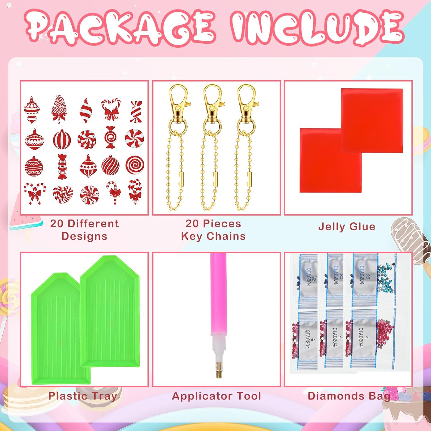 - Package Including: our package contains 20 Christmas diamond candy cane painting key chains with tools, which are suitable for those who like DIY; Plenty to use for multiple projects or share with friends and family for a fun Christmas break together