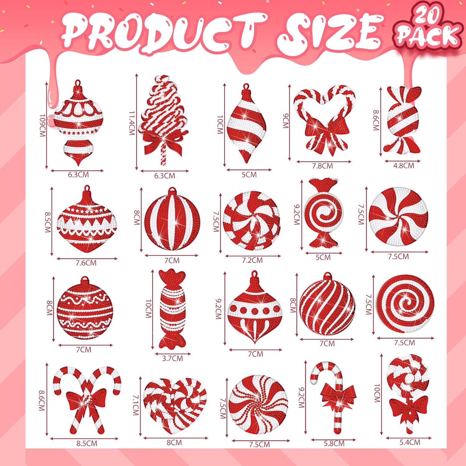 Tondiamo 20 Pcs Christmas Diamond Painting Keychain Kits 5D DIY Diamond Art Pendants Double Sided Hanging Key Chains for Christmas Party Decoration DIY(Cane Style)