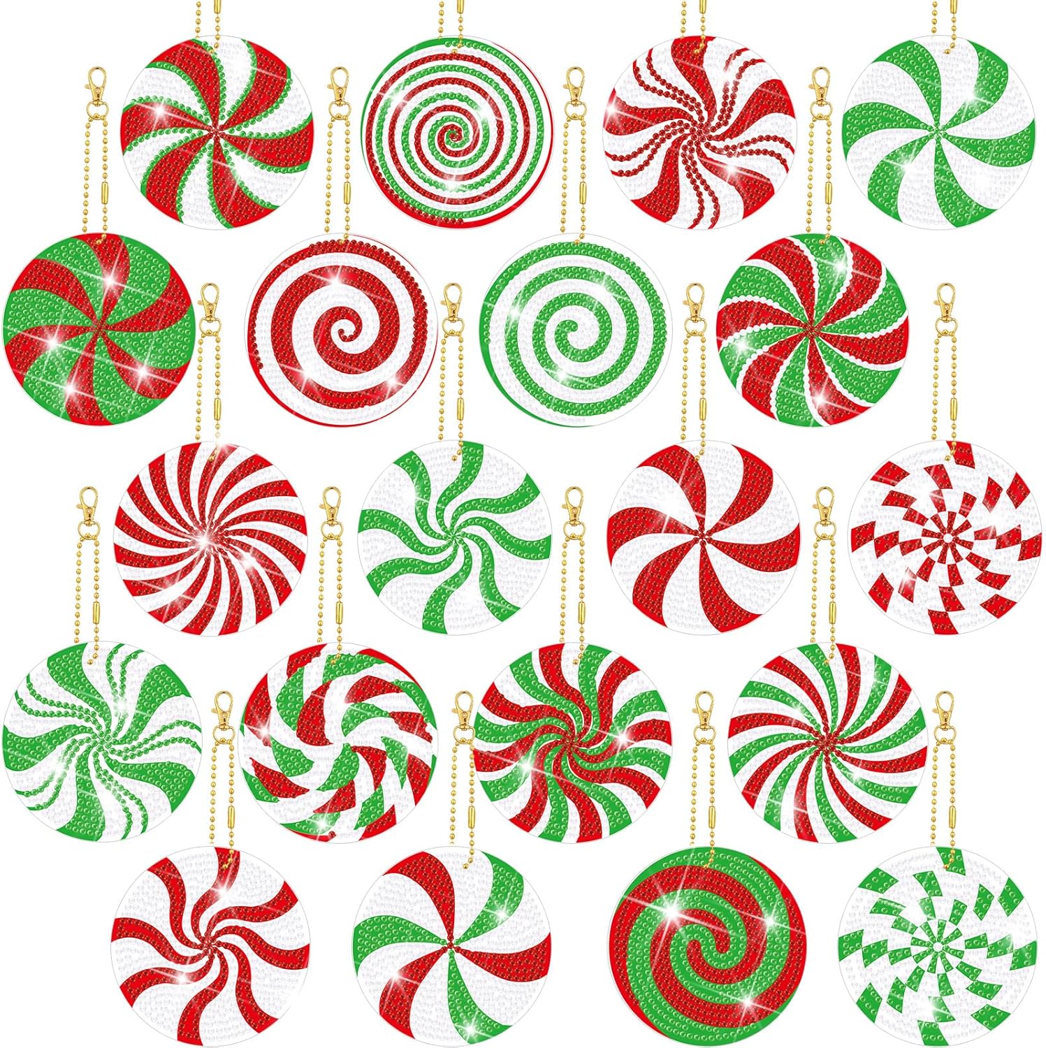 Tondiamo 20 Pcs Christmas Diamond Painting Keychain Kits 5D DIY Diamond Art Pendants Double Sided Hanging Key Chains for Christmas Party Decoration DIY(Cute Candy Cane Style)