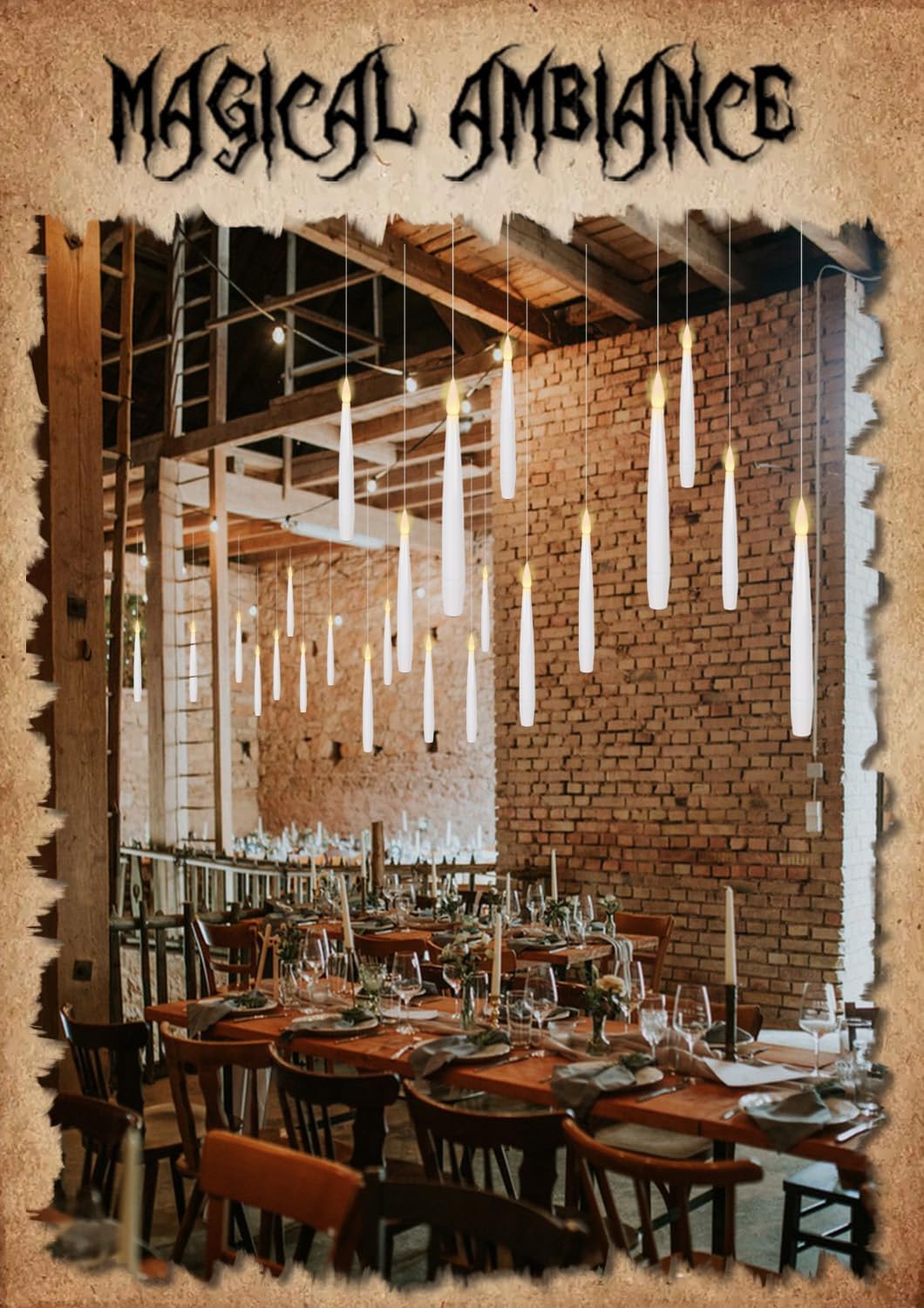 - Package Set: You will receive 22 packs of 6.1 inches tall and 0.45-inch diameter flameless floating candles with 4.9ft fishing line(barely visible) pre-attached to these LED taper candles ready to hang, 1 magical wand remote. Each floating candle is operated by 1 AAA battery (not included).