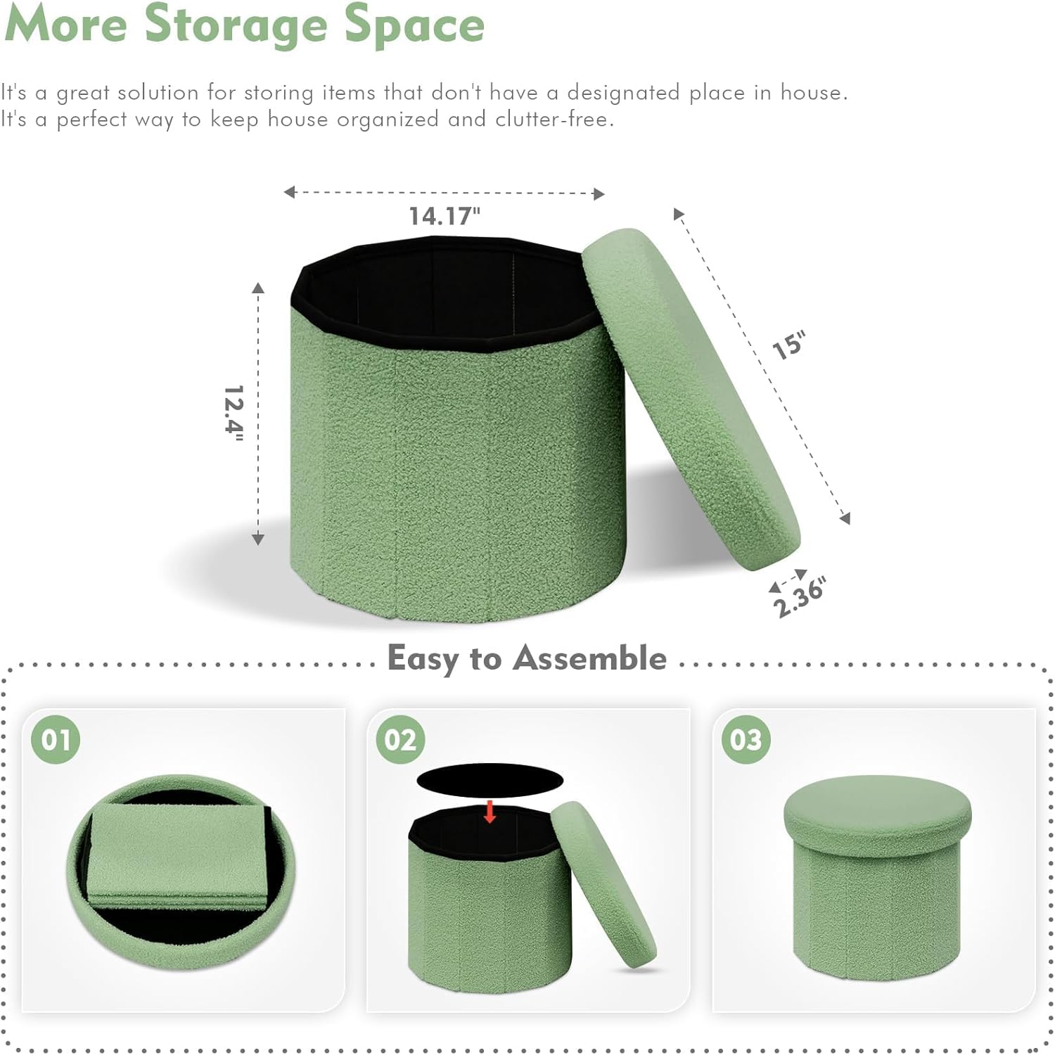 B FSOBEIIALEO Storage Ottoman Cube, Round Ottomans with Storage Foot Stool Footrest for Lving Room, Boucle Ottoman Seat for Dorm Room,Faux Teddy Fur, Green 15"x15"x15"