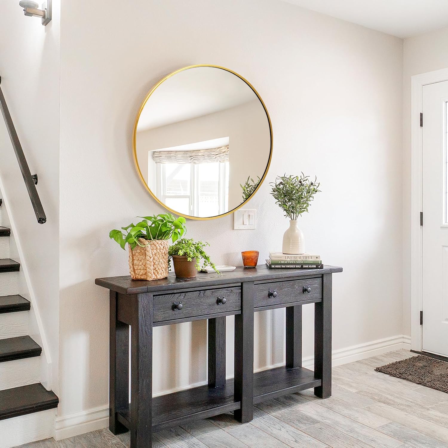 - Perfect Fit Interior Design - Great value and an excellent addition to your guest bathroom, which goes well with country chic inspired guest bathroom. And the simple round mirror is perfect fit for my entry way, bedroom, living room, baby nursery, office, which is a good wall decoration