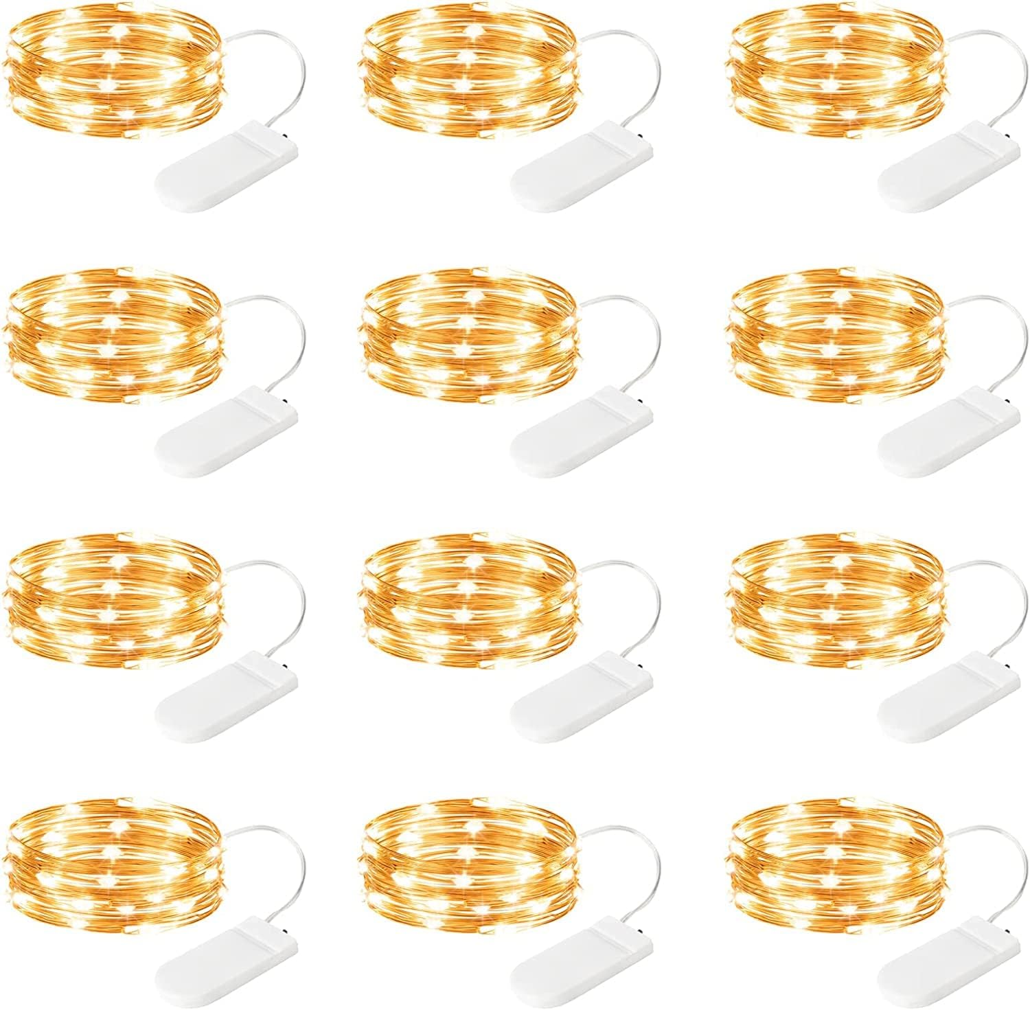 - ă 12 Pack Battery Operated LED Fairy Lights ă- Powered by 2 CR2032 batteries (included), the 7 feet micro fairy light with 20 upgraded energy-efficient LEDs is perfect for both everyday decorations as well as holiday decor. The thin copper wiring and small-sized LED bulbs will add a delicate and cozy touch to your personal space.