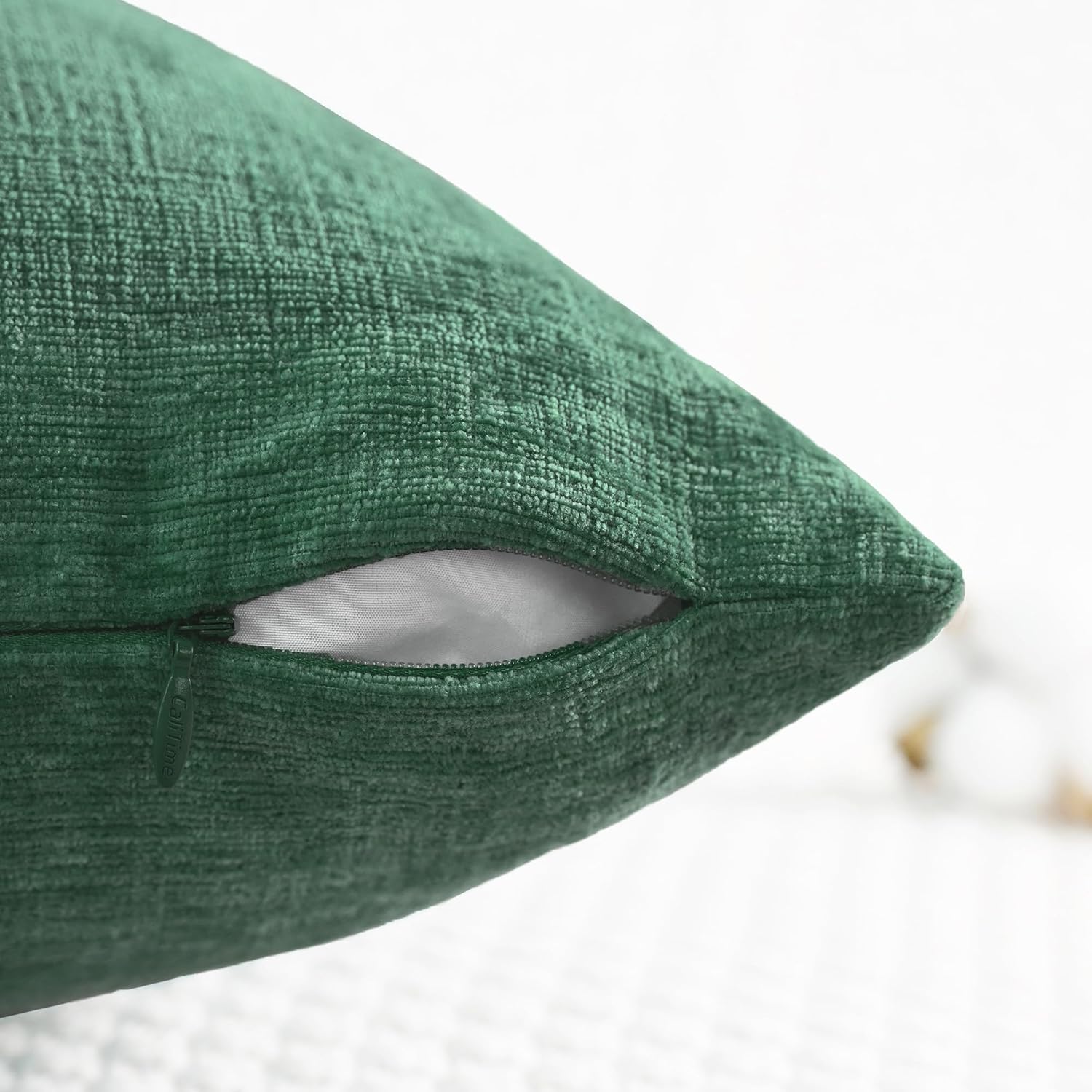 CaliTime Throw Pillow Covers Decorative 18 X 18 Inches Pack of 2 Cozy Chenille Cushion Cases for Couch Sofa Bed Living Room Home Dark Green