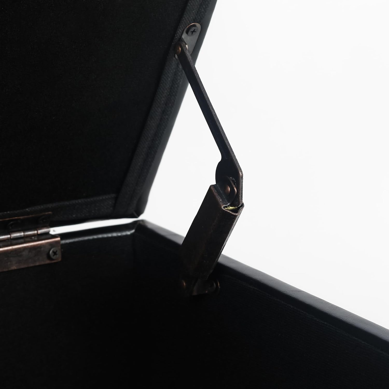 - Unique Design: Special hand strap design makes opening the ottoman easier. Just pull up the strap and the lid can be opened easily and the metal crank arm prevents the falling top hit your fingers.