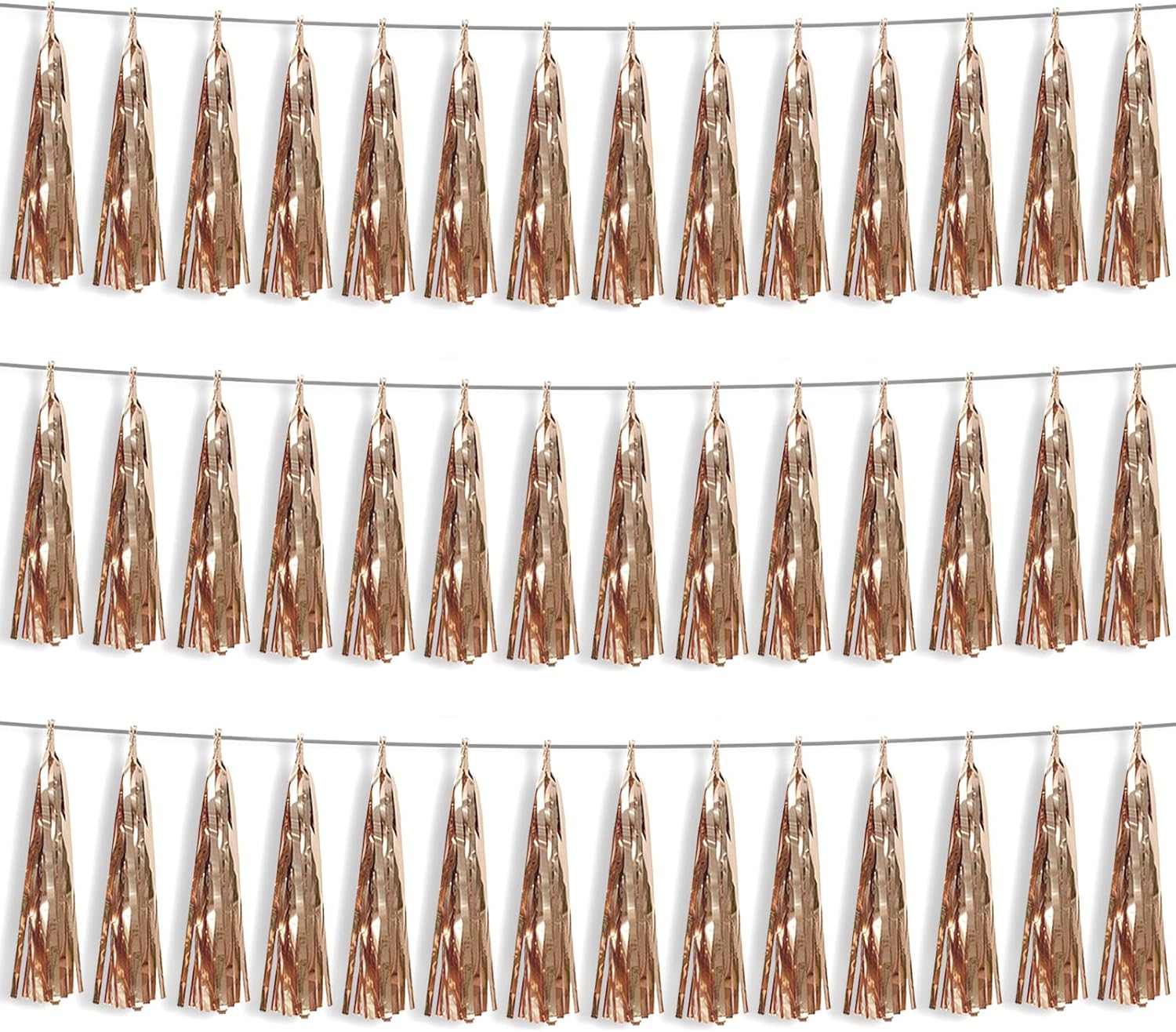 3P Champagne Gold Foil Fringe Metallic Tassel Streamers Banner Tassel Garland for Parade Floats, Bachelorette, Wedding, Birthday, Halloween, Christmas, Bridal/Baby Shower Party Decorations