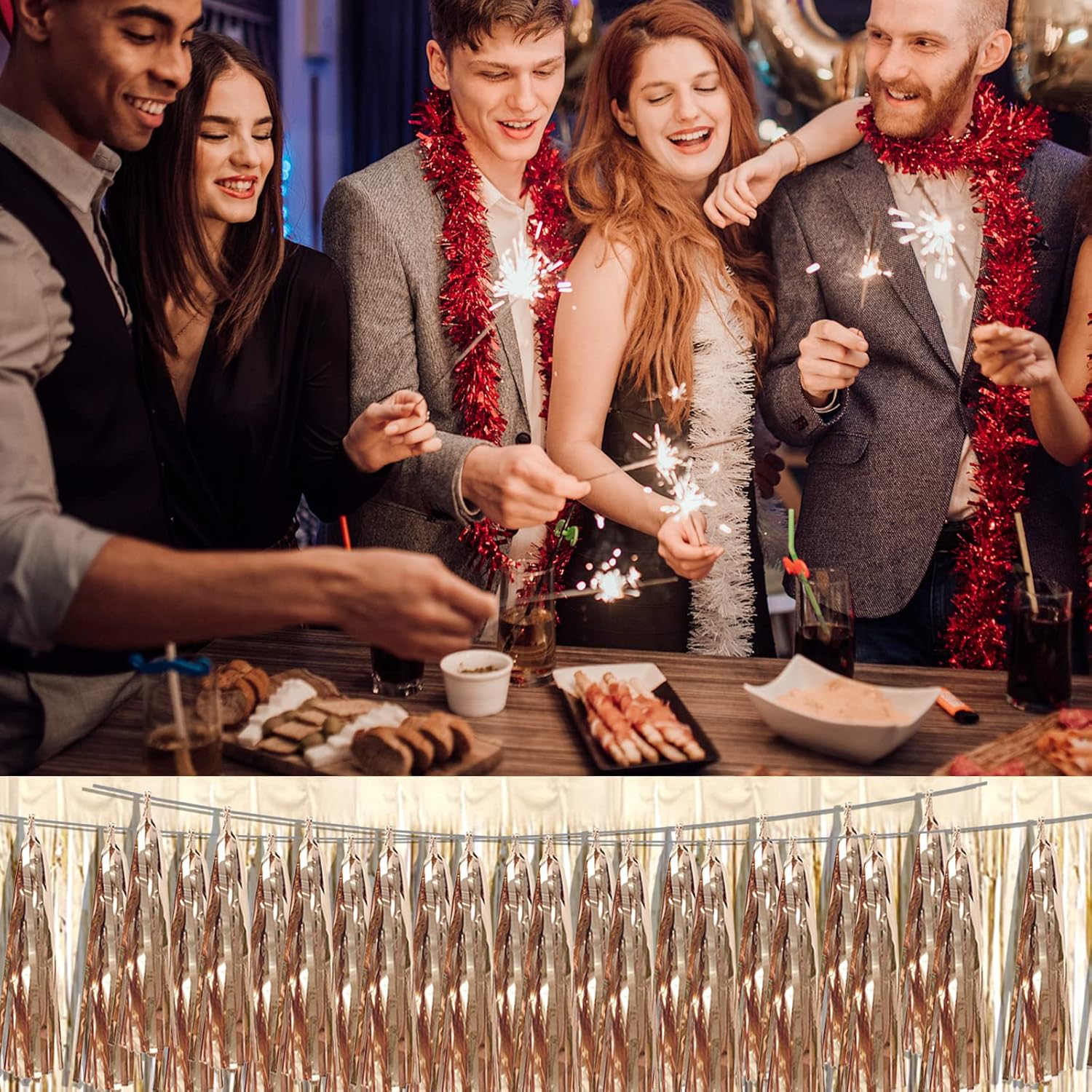 - 【Applicable Occasions】you can use the Champagne gold tinsel fringe garlands to decorate a classroom, the stage for a school program, a homecoming float, a wedding decoration, a birthday party, a baby shower, Halloween, Christmas, new year's Eve, a housewarming party, a bachelorette party, an anniversary Memorial, Hollywood Party, Independence Day, Carnival Party, Bridal Shower, Graduation and more.