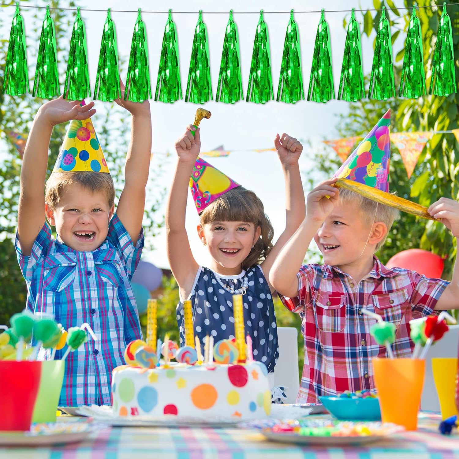 3P Green Foil Fringe Metallic Tassel Streamers Banner Tassel Garland for Parade Floats, Bachelorette, Wedding, Birthday, Halloween, Christmas, Bridal/Baby Shower Party Decorations
