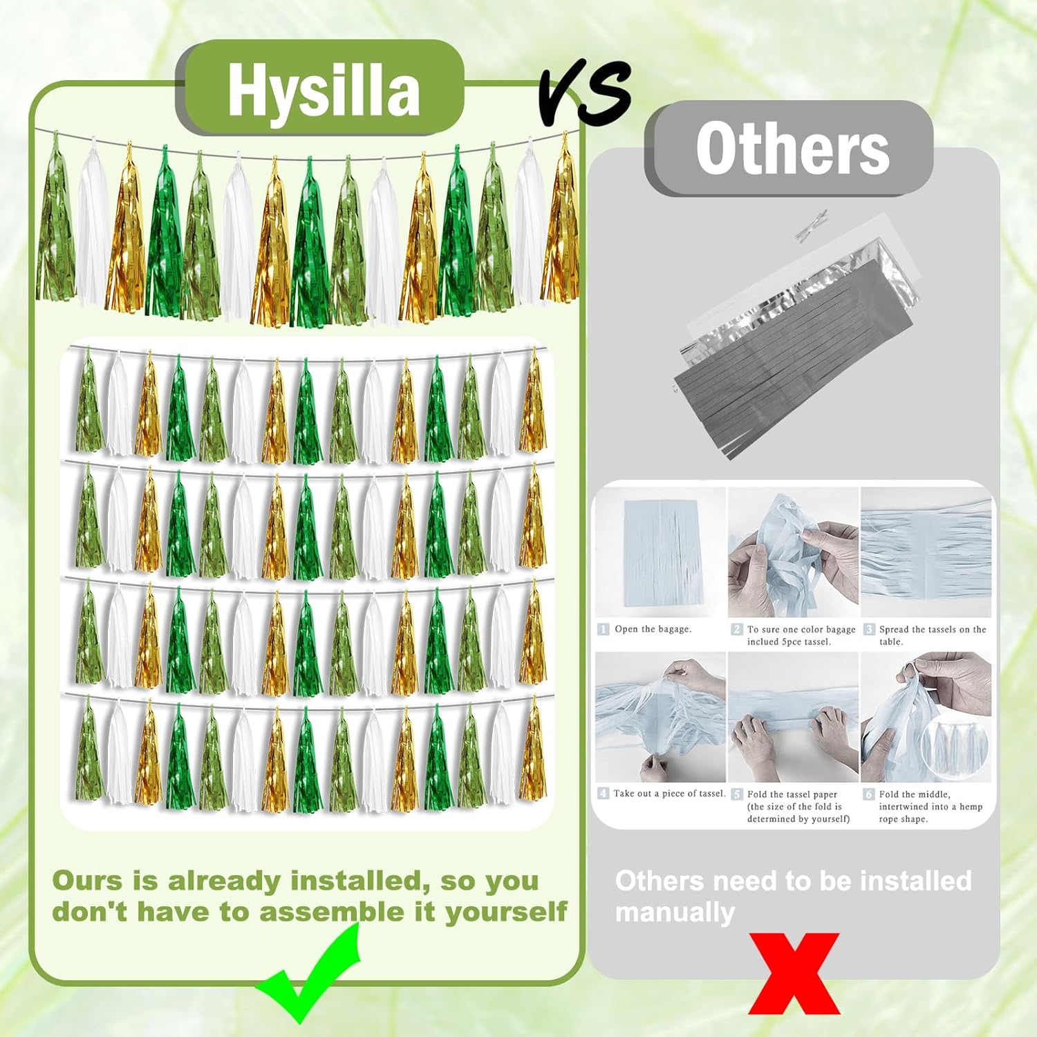 - 【Light Green White Gold Green Party Supplies Set】: The total length of the Light Green White Gold Green birthday tassels banner is 29.5 feet 45tassels, divided into 3 strips, each 9.8 feet long. Each banner contains 15 tassels, and each tassel measures 14 inches, for birthday decorations many occasions, and so on