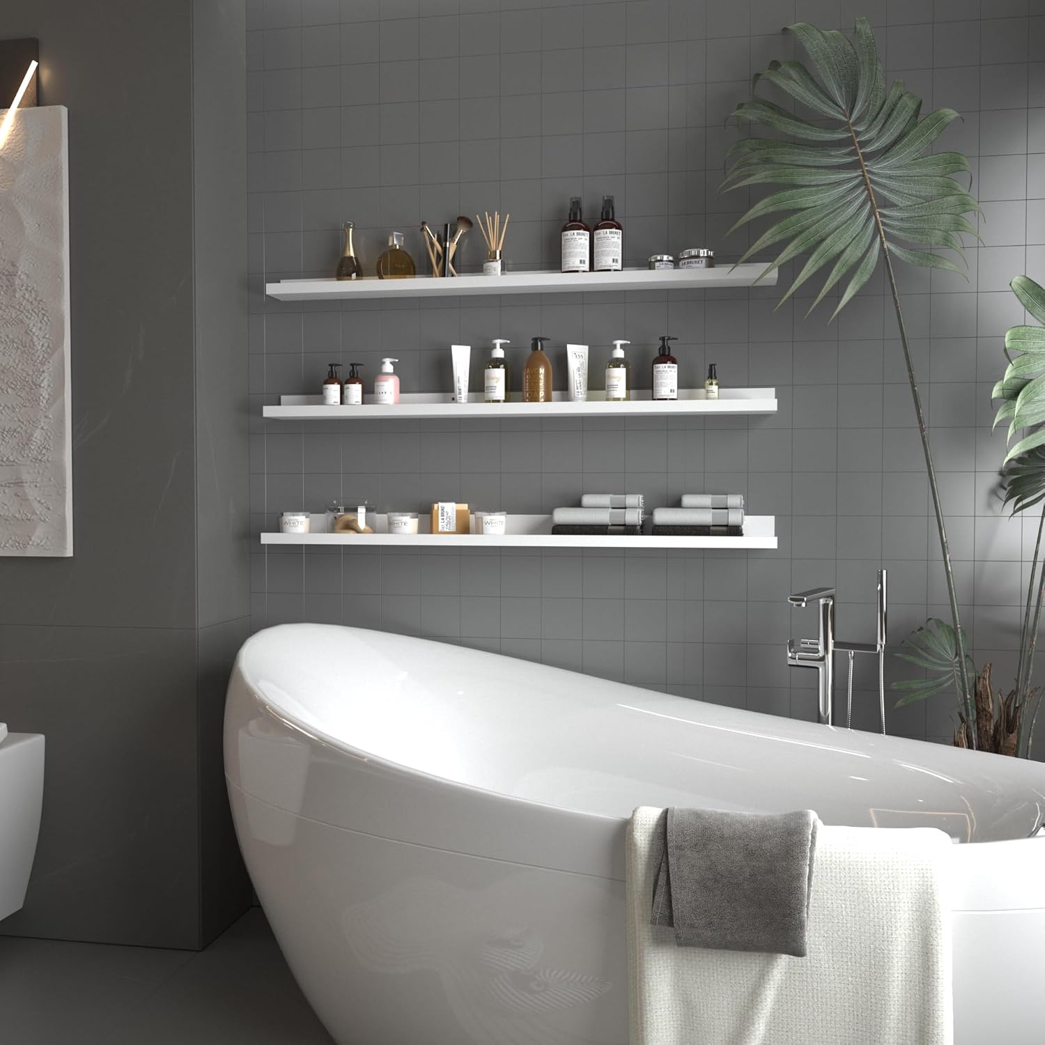 - Beautiful hanging shelves: These white wall-mounted ledge shelves are both stylish and sturdy, made of high-quality MDF board. The wood grain appearance adds a delicate touch to your room decor, making it more fashionable and modern