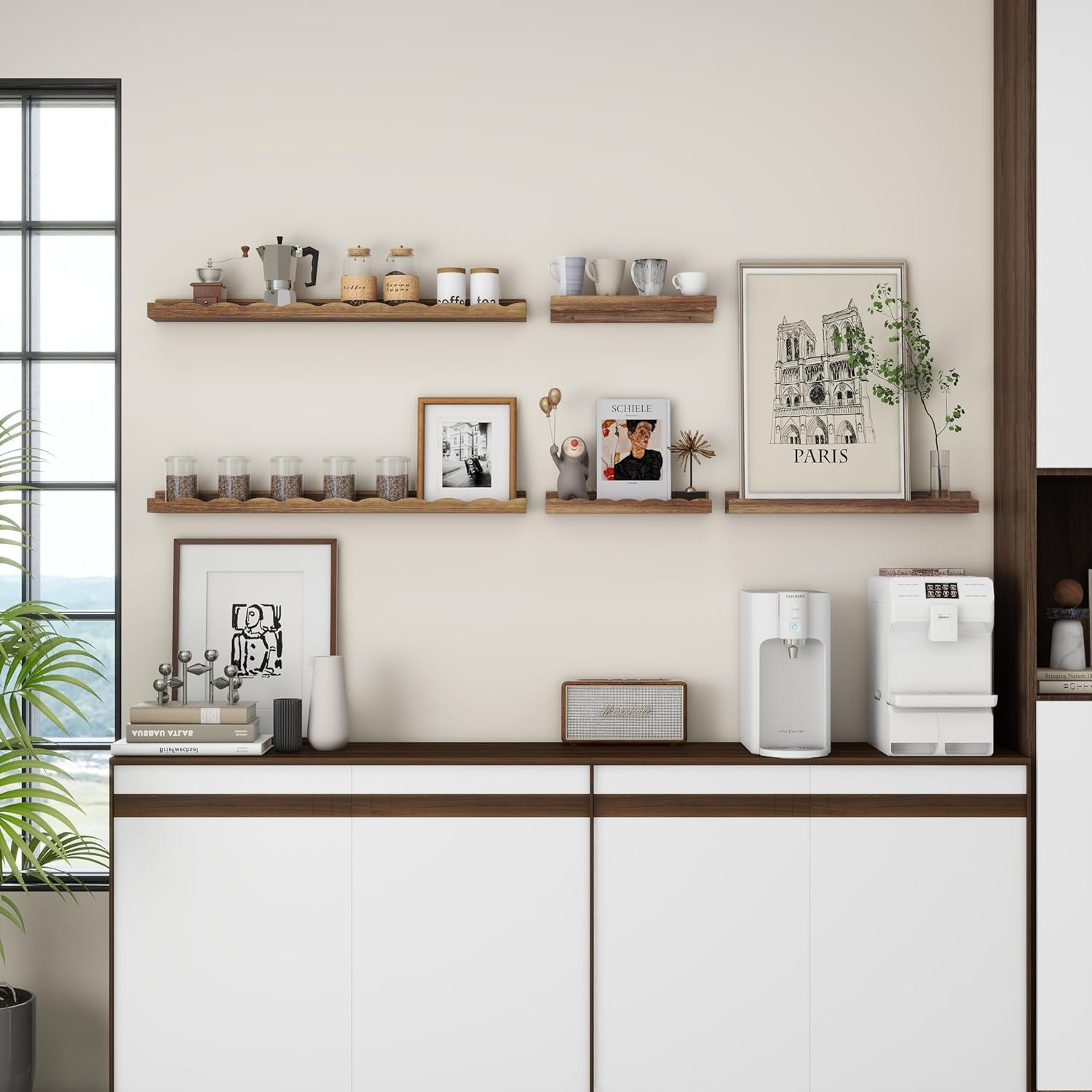 - ăPicture Ledge ShelvesăWith its effective wave design, these shelves reliably prevent items from falling off, providing a secure storage solution. You can easily organize your home space by placing picture frames, small plants, photo frames, books, toilet paper, bath towels, or decorations on these versatile shelves.
