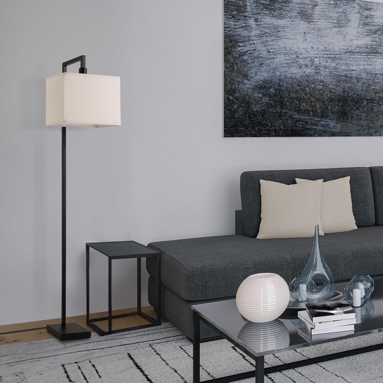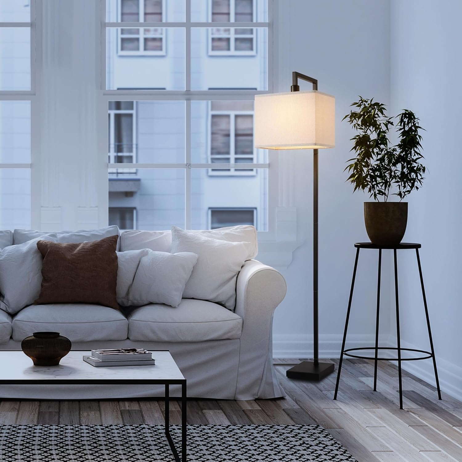 Globe Electric 61000052 60" Floor Lamp, Matte Black, Square White Fabric Shade, On/Off Rotary Switch on Socket, Square Rod, Reading Lamp, Home Office Accessories, Home Décor, Home Improvement