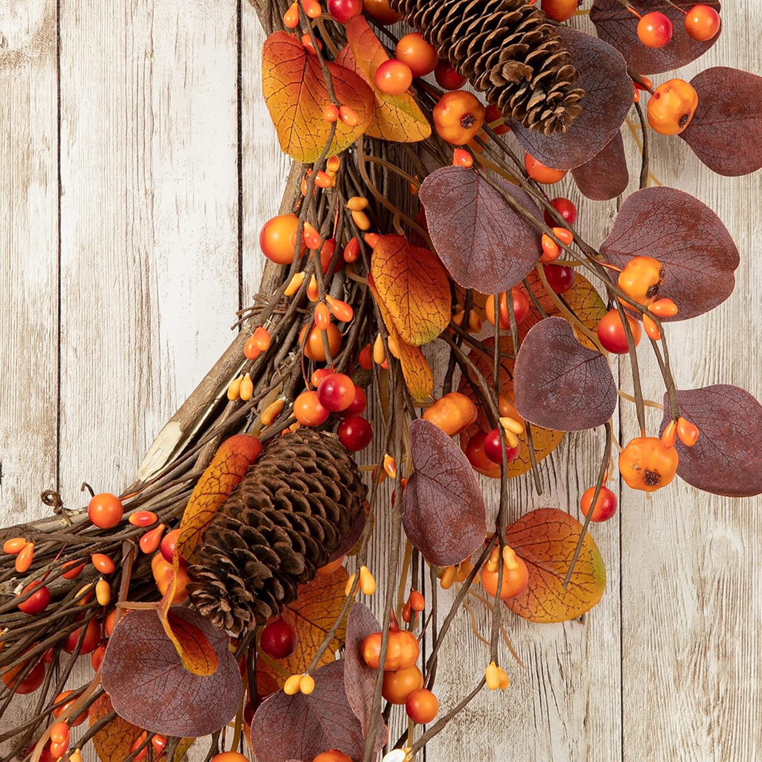 Glitzhome 22" D Fall Eucalyptus Berry Wreath, Artificial Wreaths Rustic Hanging Ornaments for Fall Front Door Wall Decor