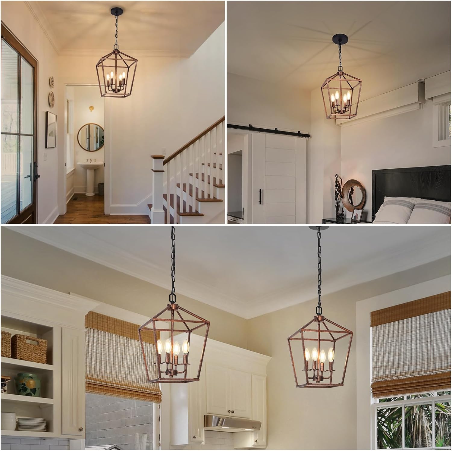 - Vinatge and Stylish Appearance: Featured with antique bronze center candlestick and geometric outward appearance, the geometric lantern chandelier is a wonderful addition to add industrial touch to your home dĂŠcor. Artistic and eye-catching, it can perfectly blend in any place such as bedroom, living room, bathroom, dining room, hallway or kitchen island (indoor use only).