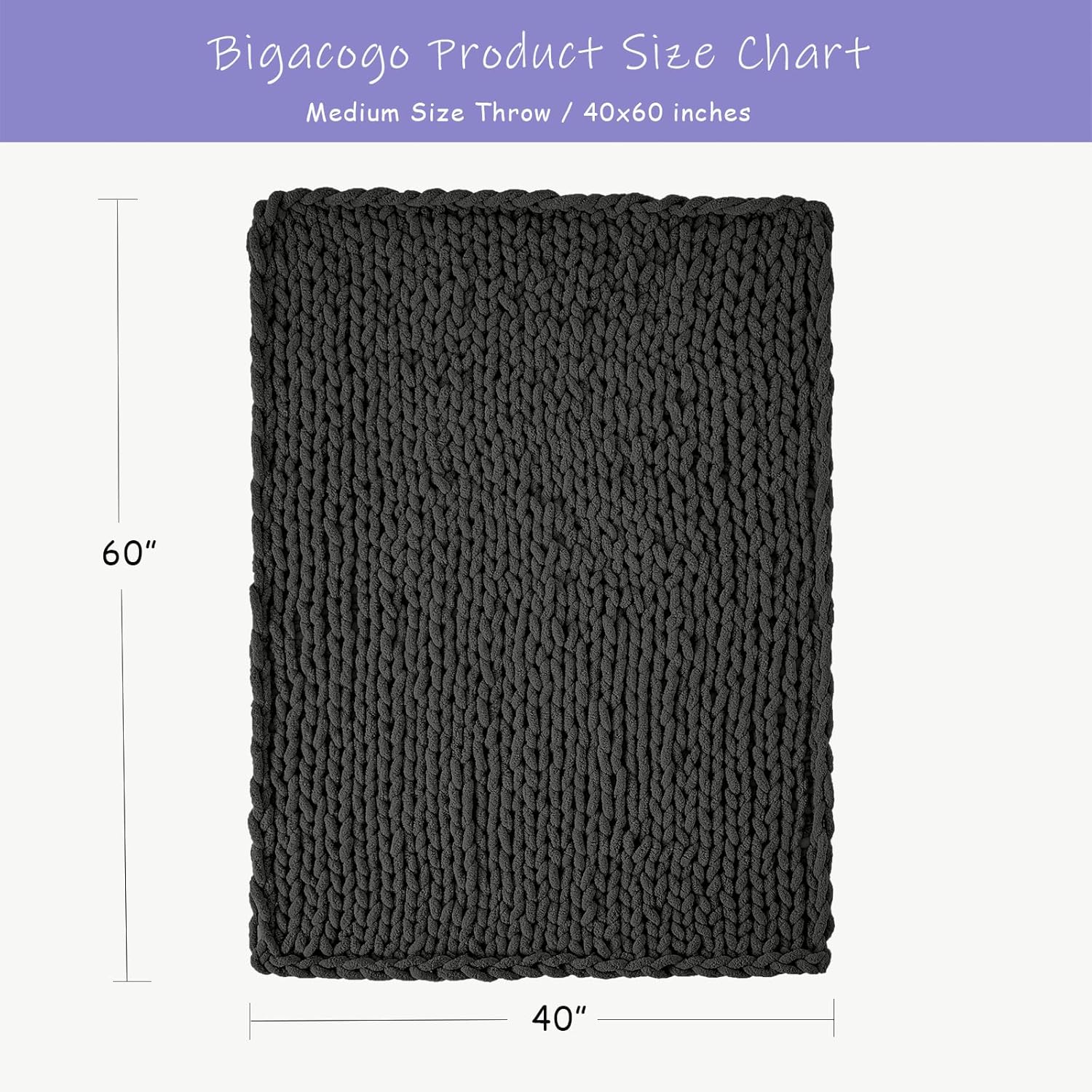 Bigacogo Chunky Knit Throw Blanket for Couch, 40x60 inches, 100% Hand Knitted with Thick Jumbo Chenille Yarn, Cozy Soft Large Rope Knot Cable Crochet Blankets for Sofa Bed Living Room, Dark Grey