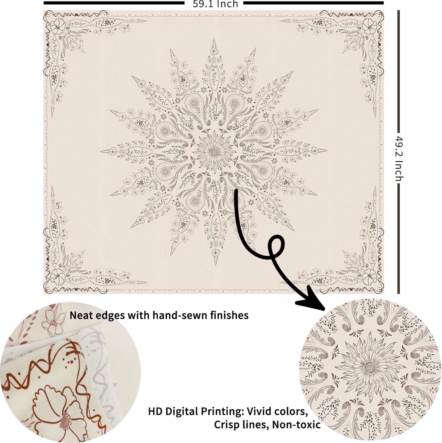 Damanse Floral Tapestry Wall Hanging Cute,Boho Wall Tapestry for Bedroom Aesthetic,Mandala Living Room Decor for Teen Girls (Flaxen, 49.20" x 59.10")
