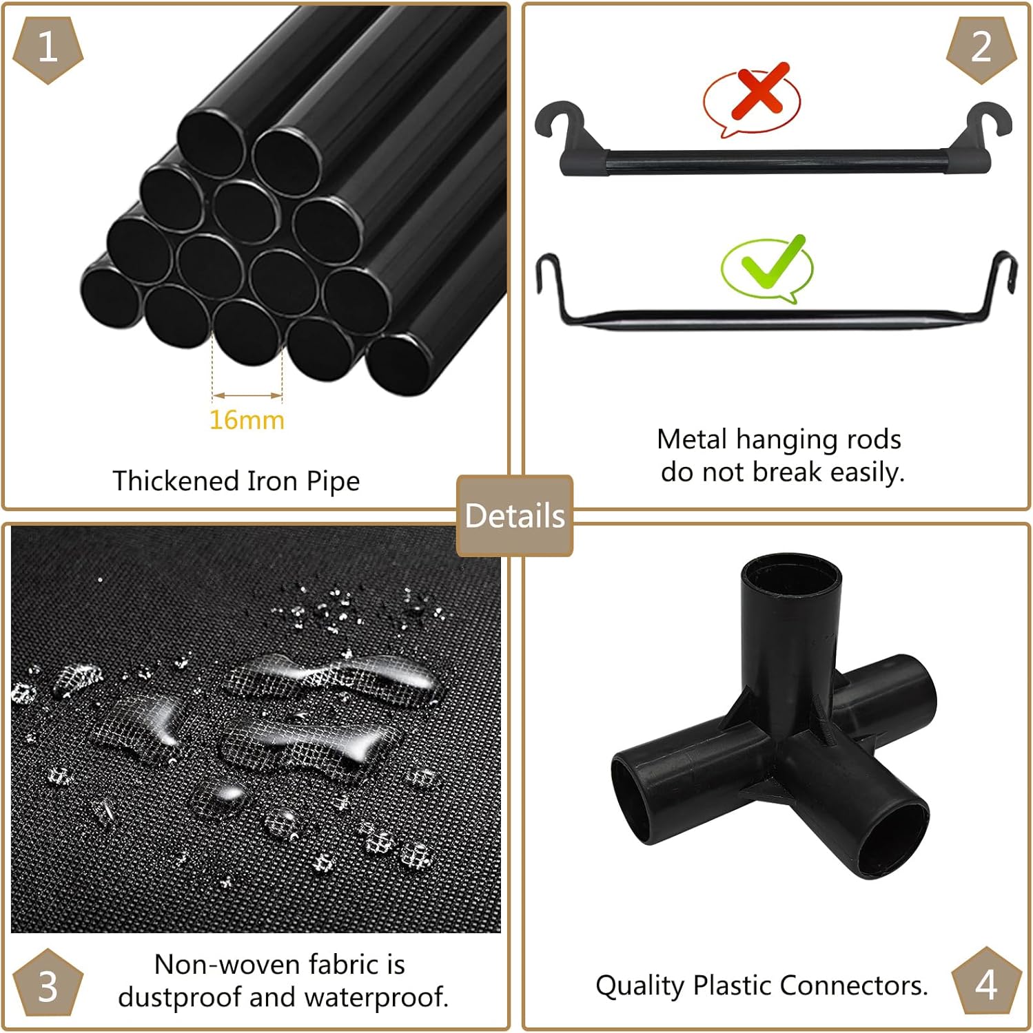 - ăMetal Frame,High Bearing CapacityăThickened iron pipe, strengthened plastic connector, greatly improve the bearing capacity of the wardrobe, please rest assured to use.
