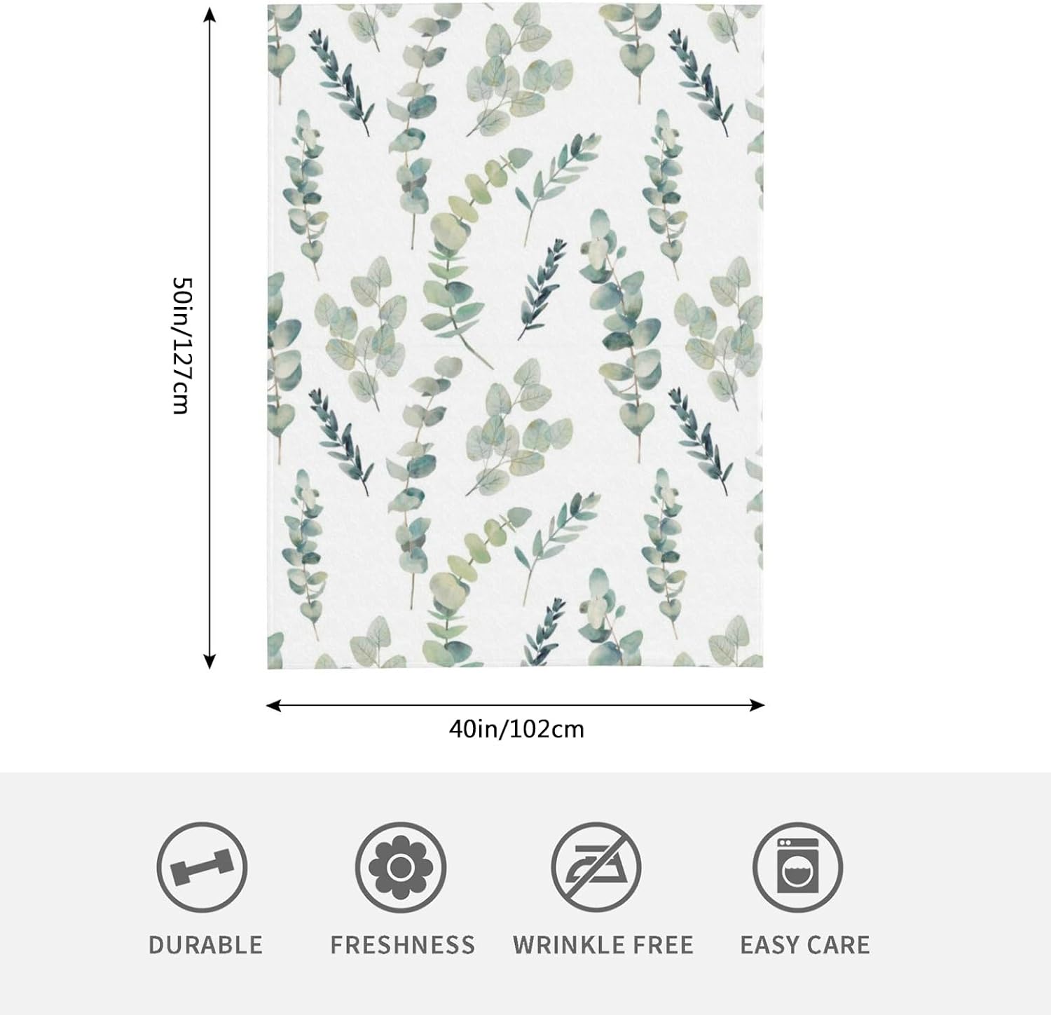 HGOD DESIGNS Watercolor Eucalyptus Flannel Fleece Bed Blanket Throw Blanket Lightweight Cozy Plush Blanket for Bedroom Living Rooms Sofa Couch 40"x50"