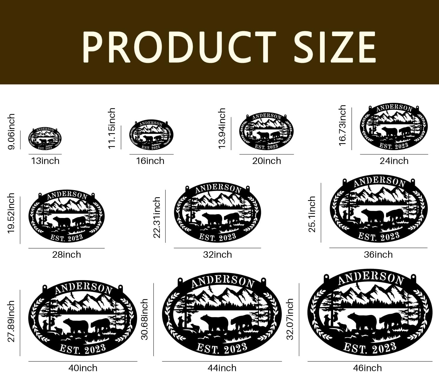 - VERSATILE DISPLAY - SIZE: Personalized Metal Name Sign - Custom Last Name Sign for Outdoor or Home Decor There are 9 sizes of House numbers for outside - diameter -13 inches, 16 inches, 20 inches, 24 inches, 28 inches, 32 inches, 36 inches, 40 inches,44 inches,46 inches. Suitable for both indoor and outdoor use, this personalized family name sign can be easily displayed on your front porch, garden, or living room wall, making it a versatile and eye-catching addition to your space.
