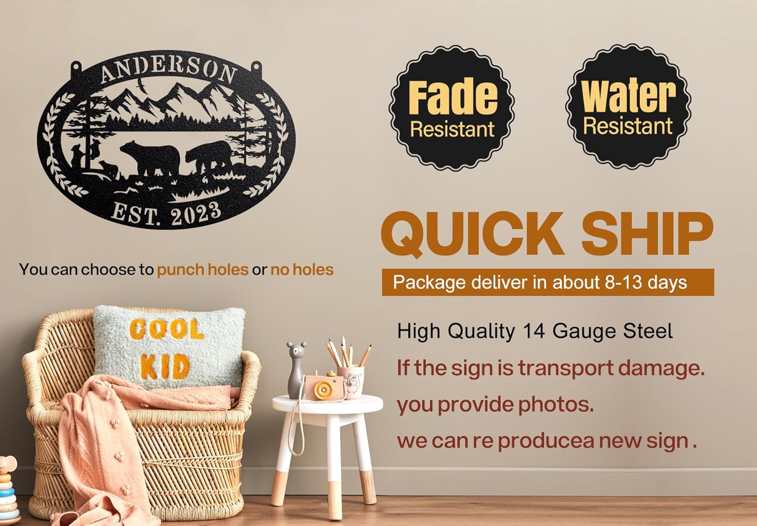 - HIGH-QUALITY CRAFTSMANSHIP: Our Personalized Rustic Bear Monogram Name Sign is Cut from heavy-duty grade 14 steel (0.08 inches thick). Heavy duty grade 14 steel will not be as thin as grade 16 and grade 18 steel, with a smooth surface and durability,These name signs will not flex nor break like products made of inferior materials.Your personalized metal sign used powder coated to give a smooth finish and long term durability