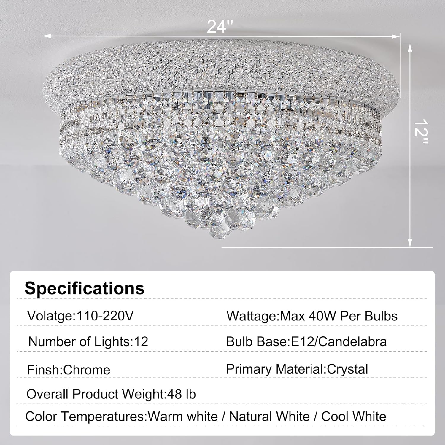 - 【Chandelier Size】The Flush Mount chandelier size is 12" H x 24" D. suitable for living room, dining room, Foyer, Entryway, Hallway, banquet hall, and central hall.
