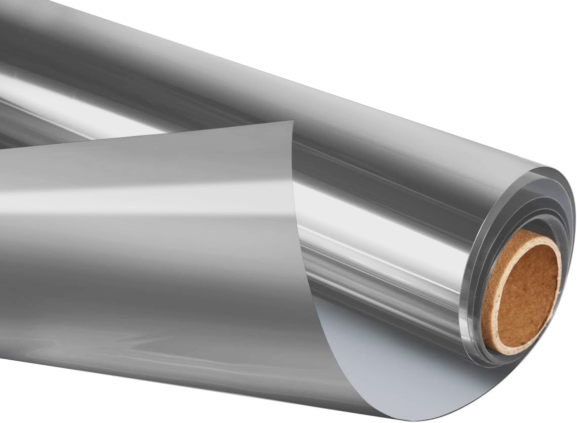 HIDBEA One Way Privacy Window Film, Daytime Mirror Reflective Heat Control UV Sun Blocking Non-Adhesive Static Cling Window Tint for Home and Office(Gray-Silver, 17.5 Inch x 6.5 Feet)