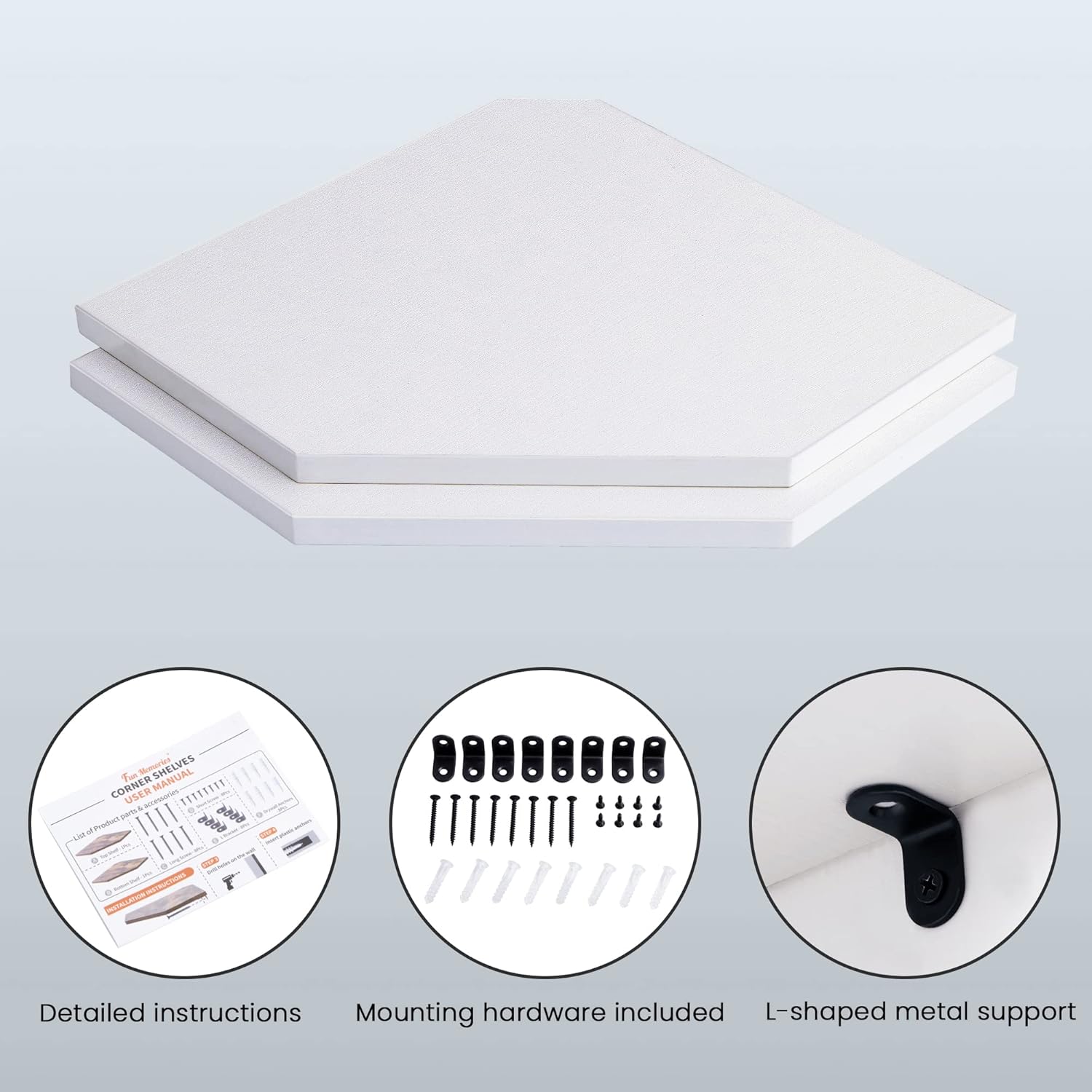 - ăEasy to MountăThe package comes with user-friendly instructions and all the necessary mounting hardware. Just place the corner wall shelf level in your desired location and secure it in place using the hidden bracket connectors provided, followed by screws.